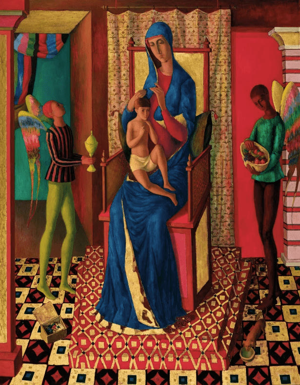 Μια σύγχρονη απόδοση του Αυστραλού καλλιτέχνη Justin O’Brien, αυτό το ζωντανό και εκφραστικό έργο σε λάδι πέτυχε τιμή ρεκόρ σε δημοπρασία για τον καλλιτέχνη, δείχνοντας την παγκόσμια εμβέλεια και τη συνεχή ζήτηση για τέχνη με θέμα τη Παναγία.