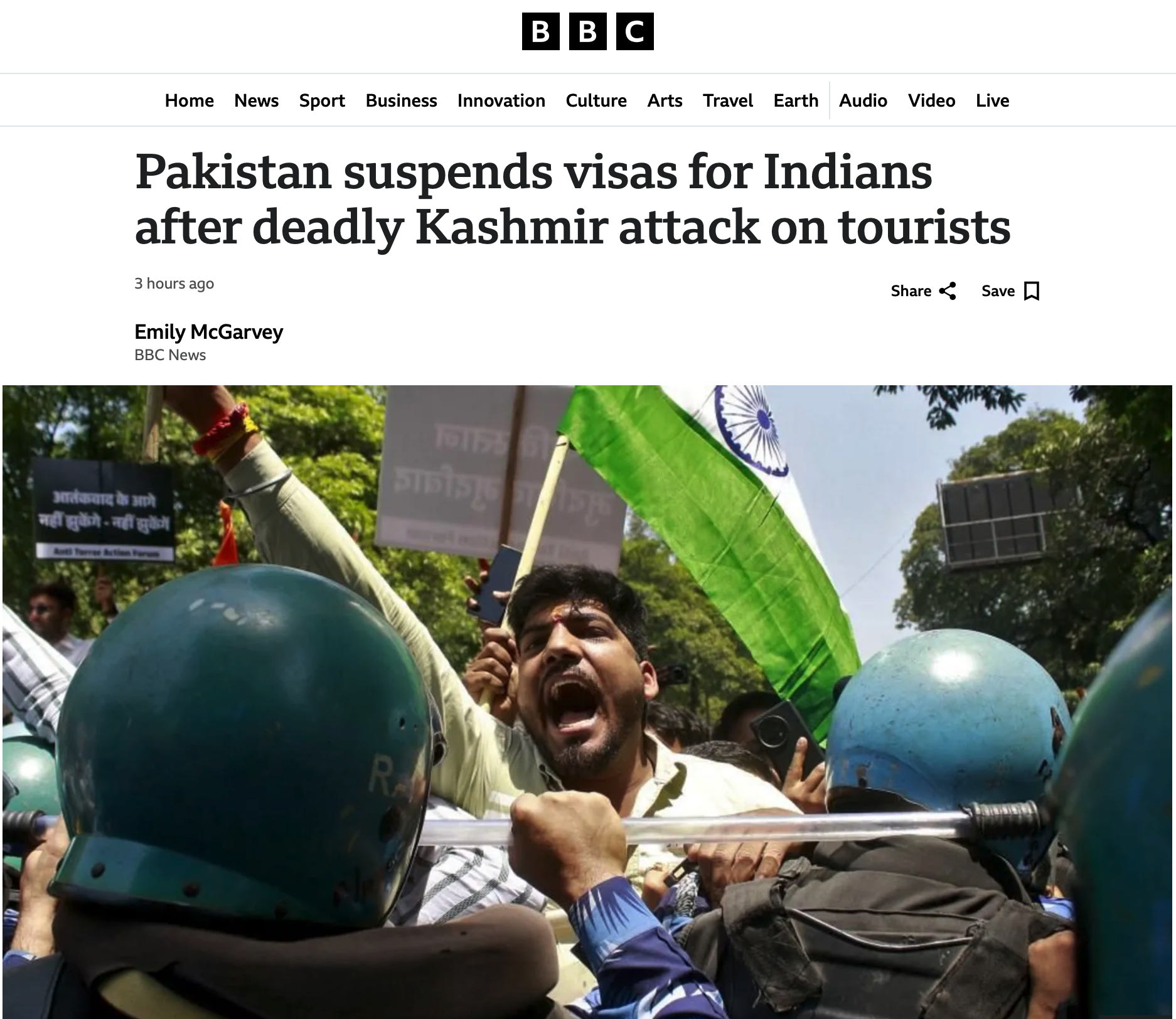 Το Πακιστάν απάντησε με μέτρα «τιμωρίας» κατά της Ινδίας, καθώς οι εντάσεις αυξήθηκαν μετά την επίθεση μαχητών στο υπό ινδική διοίκηση Κασμίρ, η οποία είχε ως αποτέλεσμα να σκοτωθούν 26 τουρίστες.