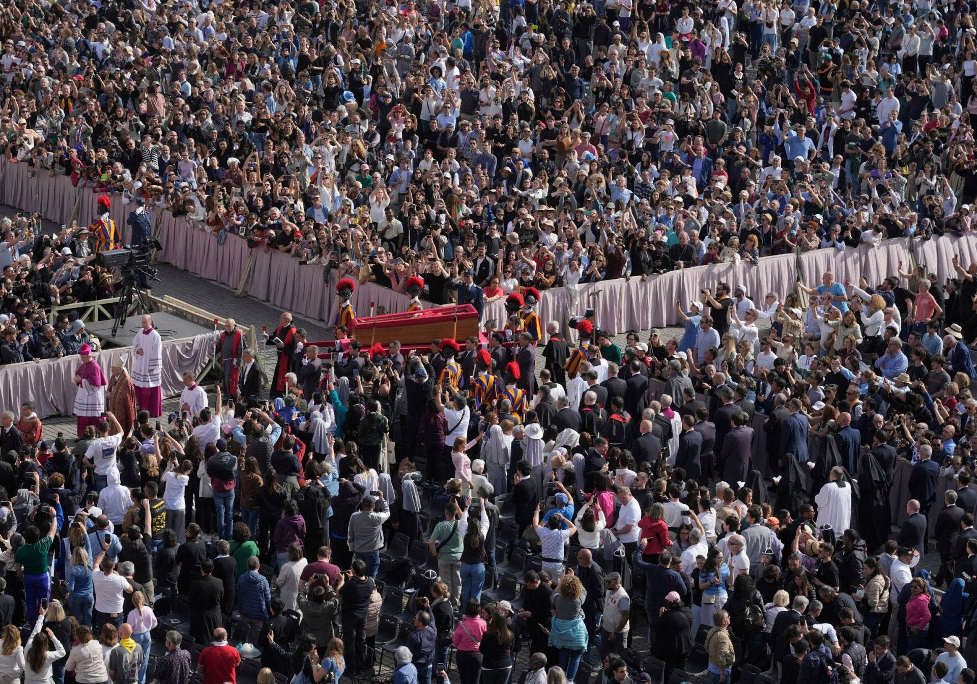 Το φέρετρο του Πάπα πέρασε μπροστά τους, ακολουθώντας την ίδια πορεία που είχε διανύσει λίγες ημέρες νωρίτερα, την Κυριακή του Πάσχα, στην τελευταία του βόλτα με το παπικό αμαξίδιο, κάτι που ο ίδιος είχε ζητήσει, παρά το γεγονός ότι ήξερε πόσο επιβαρυμένη ήταν η υγεία του.