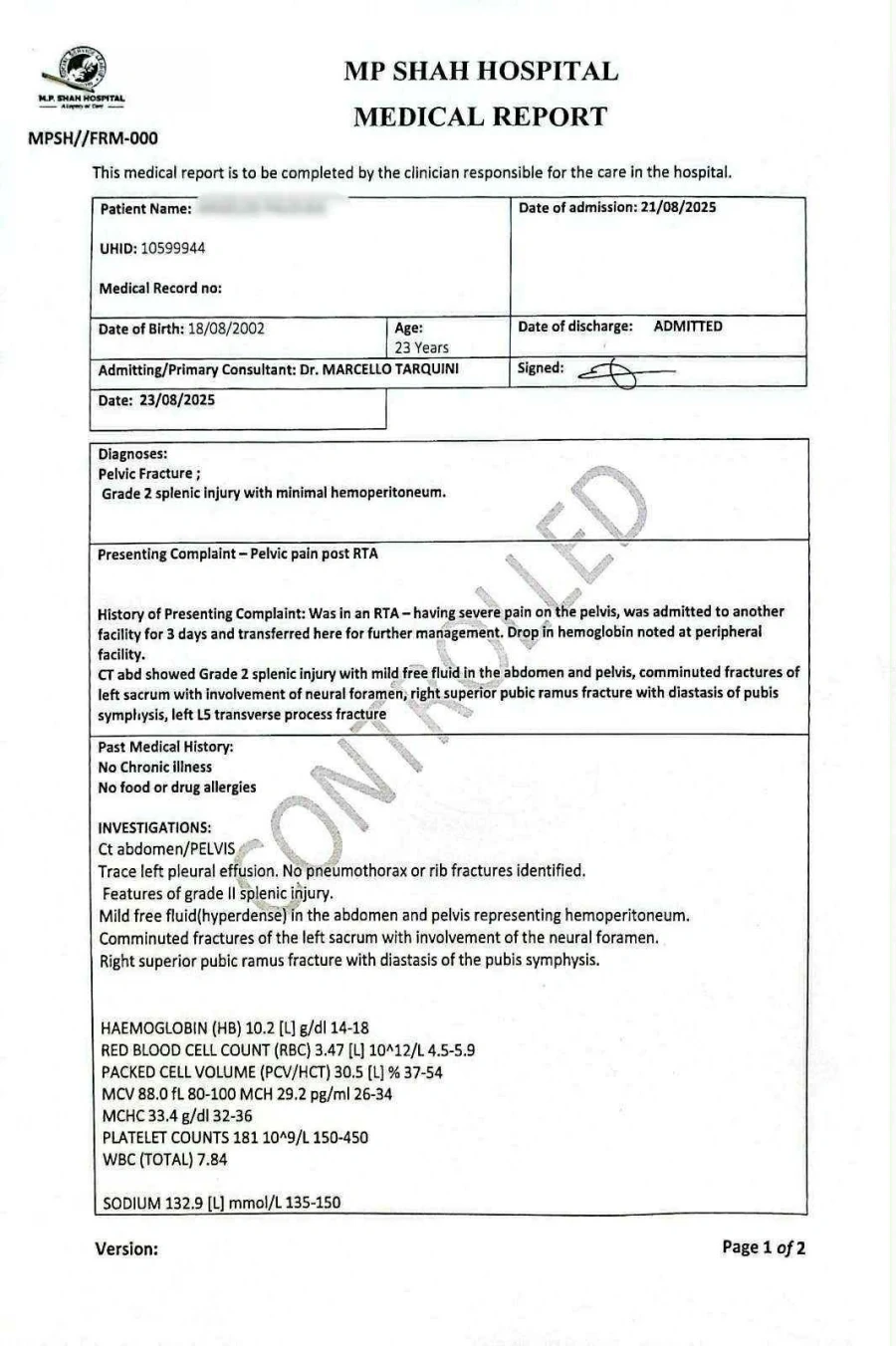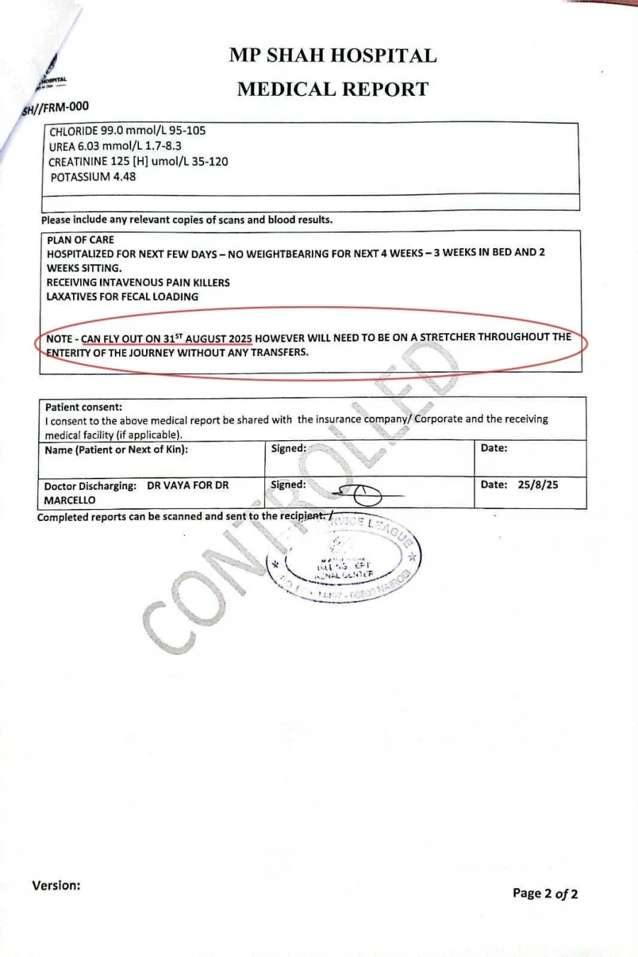 Δείτε το σχετικό έγγραφο από το νοσοκομείο του Ναϊρόμπι που το πιστοποιεί: