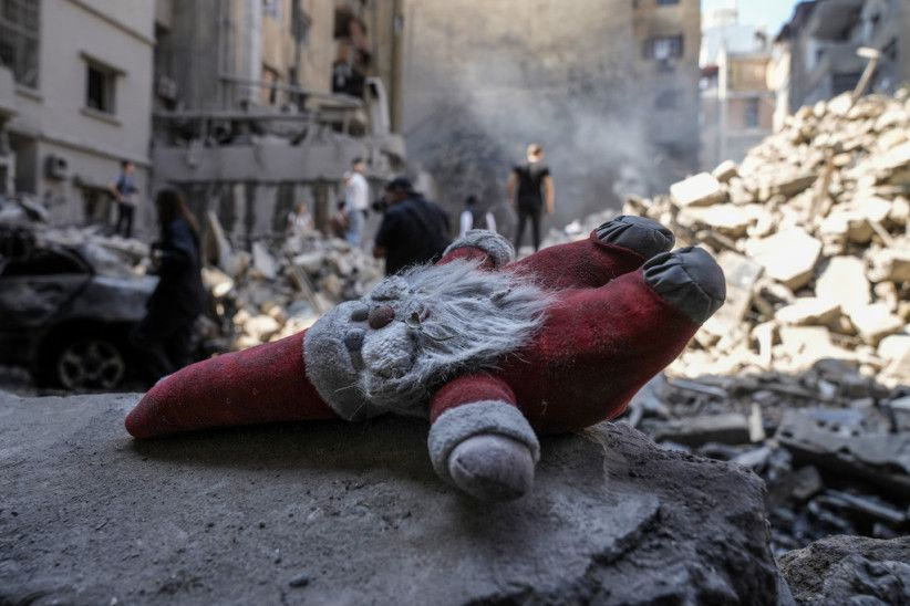 Οικογένειες αγκαλιάζονται σφιχτά κάτω από τον σκελετό ενός σιδερένιου χριστουγεννιάτικου δέντρου. Γύρω από μια σφιγμένη γροθιά που τοποθετήθηκε πάνω από την πλατεία μετά τις διαδηλώσεις των νέων το 2019, υπάρχουν κουβέρτες, στρώματα και σκηνές από ό,τι άλλο μπορούσε να βρει ο κόσμος.