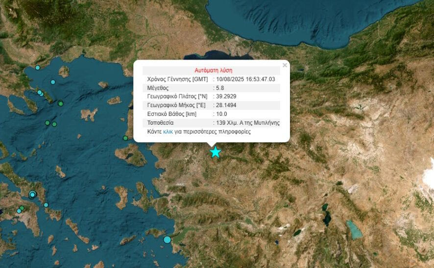 Σεισμός μεγέθους 6 Ρίχτερ σημειώθηκε στην Τουρκία στις 19:53 και σύμφωνα με τις πρώτες εκτιμήσεις του Ευρωμεσογειακού Ινστιτούτο το επίκεντρο εντοπίζεται κοντά στην πόλη Μπελίκεσιρ, ενώ το εστιακό βάθος υπολογίζεται στα 11 χιλιόμετρα.
