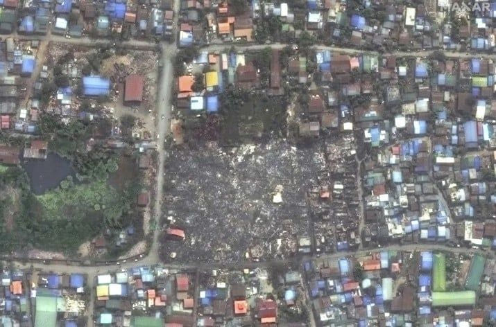 Έχουν περάσει πάνω από 24 ώρες από τότε που ο ισχυρός σεισμός 7,7 Ρίχτερ χτύπησε την Μιανμάρ και για δεύτερο βράδυ τα σωστικά συνεργεία αναζητούν επιζώντες στα συντρίμμια. Δορυφορικές εικόνες δείχνουν το μέγεθος της καταστροφής με ισοπεδωμένα κτίρια και σπασμένους δρόμους.