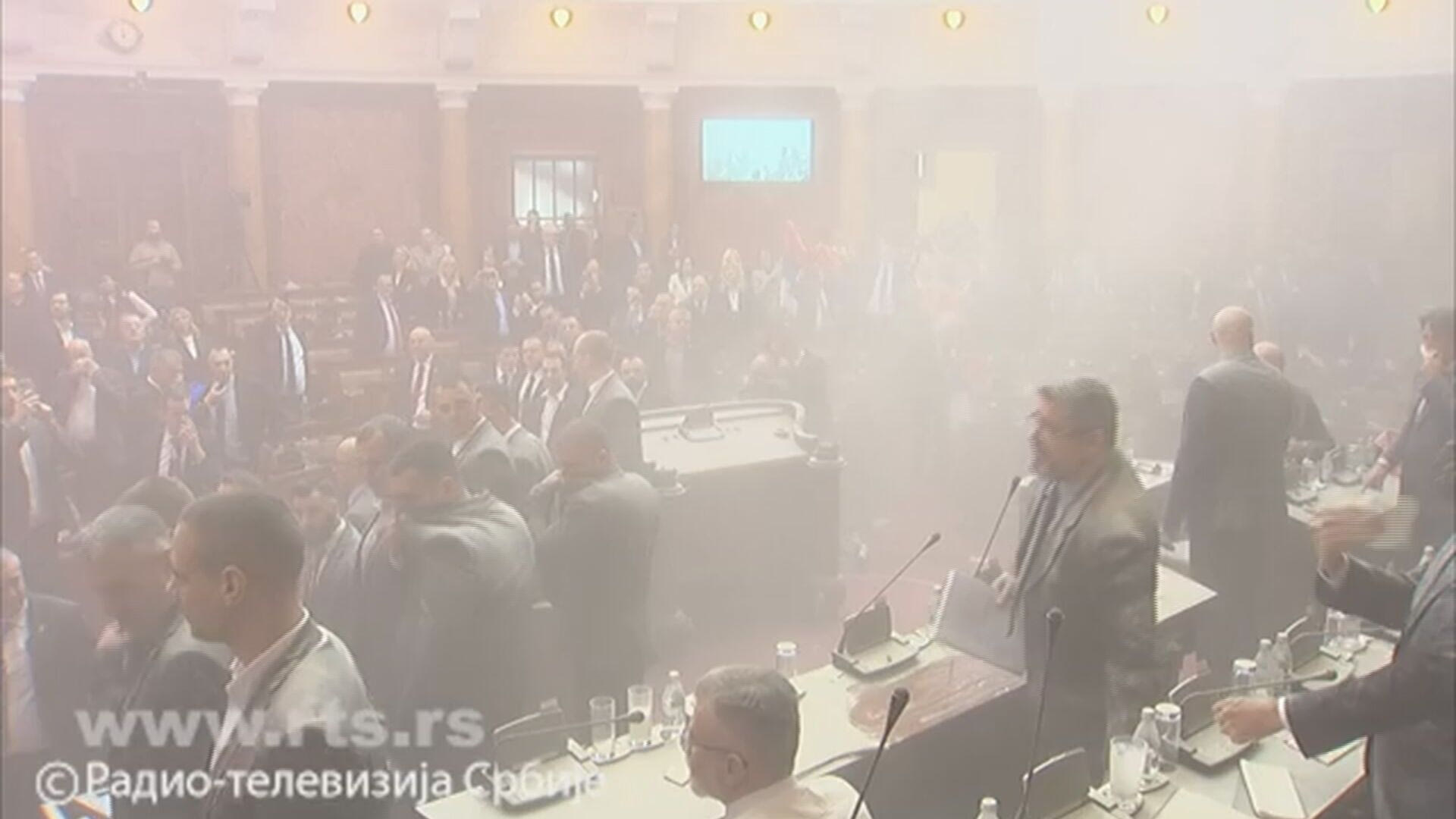 Σειρά επεισοδίων πραγματοποιήθηκαν την Τρίτη (4/3) στην σερβική Βουλή, όταν βουλευτές της αντιπολίτευσης νωρίς το μεσημέρι προσπάθησαν να διακόψουν την συνεδρίαση ανάβοντας καπνογόνα τα οποία εκσφενδόνισαν κατά των βουλευτών της συμπολίτευσης.