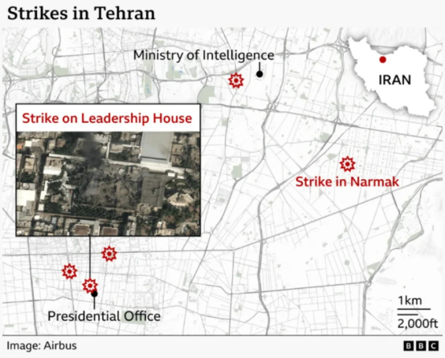 Η Τεχεράνη φαίνεται να έχει δεχθεί τα πιο εκτεταμένα πλήγματα, με επιθέσεις να στοχεύουν στρατιωτικές εγκαταστάσεις και κέντρα πληροφοριών. Παράλληλα, αναφορές κάνουν λόγο για χτυπήματα και σε άλλες μεγάλες πόλεις, καθώς και σε στρατηγικές στρατιωτικές υποδομές.
