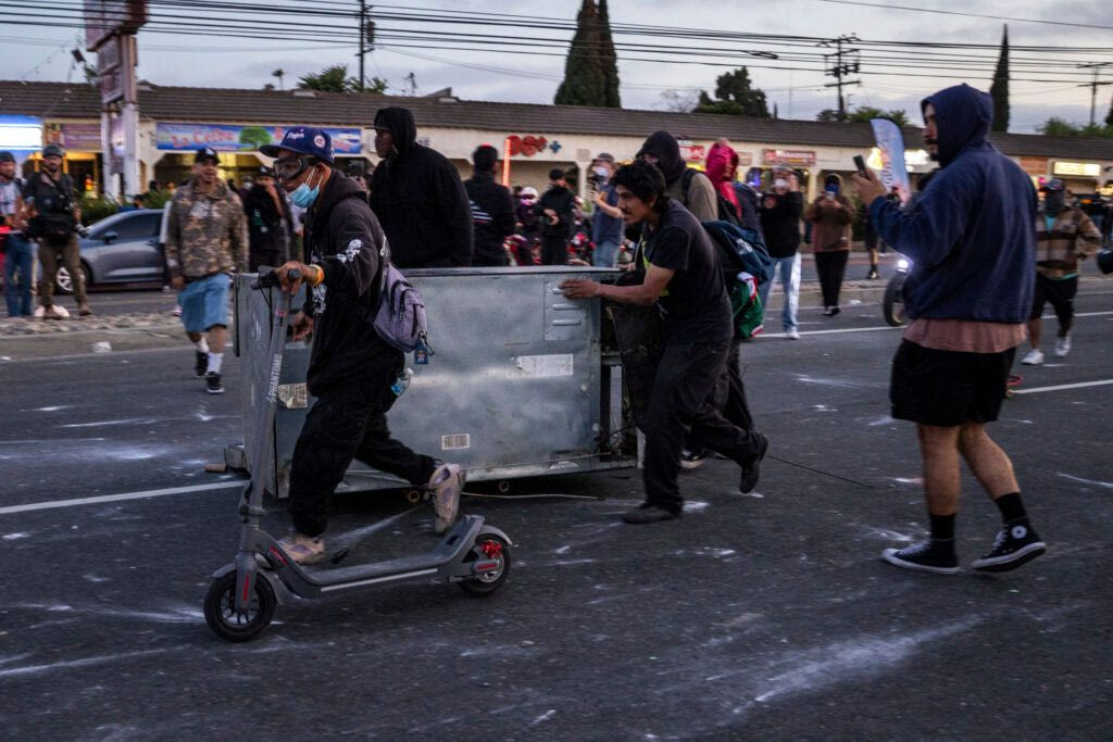 Πύρινα οδοφράγματα, καμένα αυτοκίνητα, σπασμένες βιτρίνες, πέτρες, ξύλα και άλλα πρόχειρα πολεμοφόδια συνθέτουν το σκηνικό στο Λος Άντζελες, τη δεύτερη μέρα ταραχών και επεισοδίων, με αφορμή τις επιχειρήσεις της ειδικής υπηρεσίας μετανάστευσης για τη σύλληψη παράνομων μεταναστών.