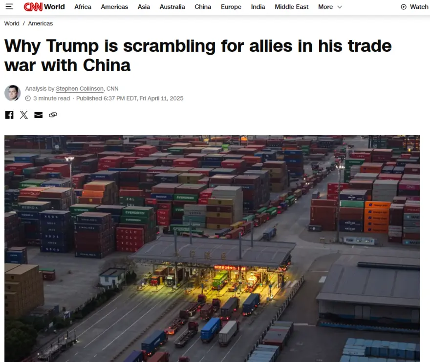 Την ώρα που η σύγκρουση με την Κίνα κορυφώνεται με δασμούς-ρεκόρ και εκατέρωθεν απειλές, ο Αμερικανός πρόεδρος επιχειρεί τώρα να συγκροτήσει ένα διεθνές μέτωπο πίεσης προς το Πεκίνο -αλλά το γεωπολιτικό κεφάλαιο έχει ήδη σπαταληθεί, γράφει χαρακτηριστικά το αμερικανικό Μέσο.