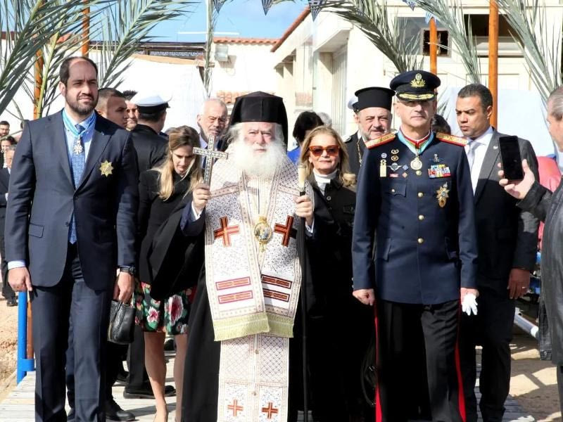 Ο Μακαριώτατος εκ του Πατριαρχικού Θρόνου, απηύθυνε θερμό χαιρετισμό εις τον Εξοχότατο Υφυπουργό κ. Κεφαλογιάννη και προς τον Αρχηγό του ΓΕΕΘΑ κ. Χούπη. Ιδιαίτερα στον πρώτο ανέφερε την προσωπική σχέση που διατηρεί με την οικογένειά του και τόνισε πως θυμάται τον σημερινό Υπουργό από τότε που ήταν μικρό παιδί. Του ευχήθηκε καλή επιτυχία στο έργο του και του τόνισε την ιδιαίτερη χαρά του, ότι τιμά με την παρουσία του την Εορτή των Θεοφανίων ως εκπρόσωπος της Ελληνικής Πολιτείας. Υπεγράμμισε ακόμα, όπως πράττει πάντα, τις ιδιαιτέρως φιλικές σχέσεις που διατηρούν οι δύο πατρίδες μας, Ελλάδα και Αίγυπτος, υπενθυμίζοντας προς όλους, ότι δεν είναι επισήμως μόνον πολιτογραφημένος υπήκοος της Αιγύπτου, αλλά αισθάνεται στην ψυχή διπλή την ευλογημένη υπερηφάνεια να ανήκει σε δύο μοναδικούς λαούς τεραστίας πνευματικής παρακαθήκης και συγκλονιστικού μεγέθους πολιτισμού, τον Ελληνικό και τον Αιγυπτιακό ! Επιπλέον ανέφερε την σπουδαιότητα της συμμετοχής της Κύπρου στην τριπλή συμμαχία ειρηνικής σταθερότητος και εποικοδομητικής προόδου στην ανατολική Μεσόγειο και στη Μ.Ανατολή.