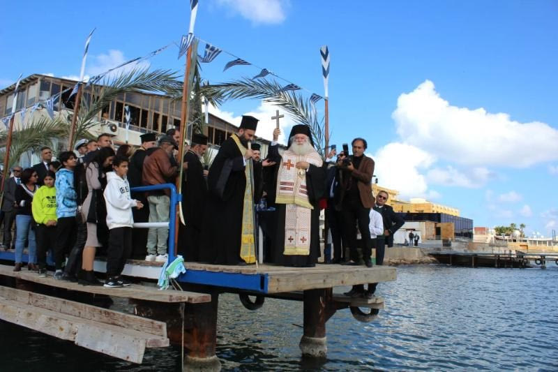 Μόλις ο Πατριάρχης έριξε το πανιερο σύμβολο του Χριστιανισμού στα γαλάζια μεσογειακά νερά του Ναυτικού Ομίλου, τρεις δυναμικοί νεαροί οι: Αδάμ, Λάμπρος και Ρωμαίος έπεσαν στη θάλασσα να πιάσουν το σταυρό. Τρεις φορές ερρίφθη και κάθε φορά ένας εξ αυτών τον έπιανε και με σεβασμό τον παρέδιδε στον Πατριάρχη Αλεξανδρείας. Η συγκίνηση διάχυτη στα πρόσωπα όλων. Τα χαμόγελα και οι ευχητικες ιαχές ήταν η απόλυτη πιστοποίηση για τη βαθιά ψυχική και πνευματική ανάταση των παρευρισκόμενων στην παραθαλάσια εξέδρα. Και όταν ο Πατριάρχης πέταξε τη λευκή περιστερά και έδωσε στα χέρια του Ελληνος Πρέσβυ κ. Νικόλαου Παπαγεωργίου να πετάξει με τη σειρά του κι εκείνος το σύμβολο του Αγίου Πνεύματος και της αγάπης, το περιστέρι κάθισε τον ώμο του Υφυπουργού κ. Κεφαλογιάννη, θαρρείς και ήθελε με τη λευκότητά του να τιμήσει με γούρικο τρόπο την παρουσία του Υφυπουργού στην πόλη του Ελληνισμού.