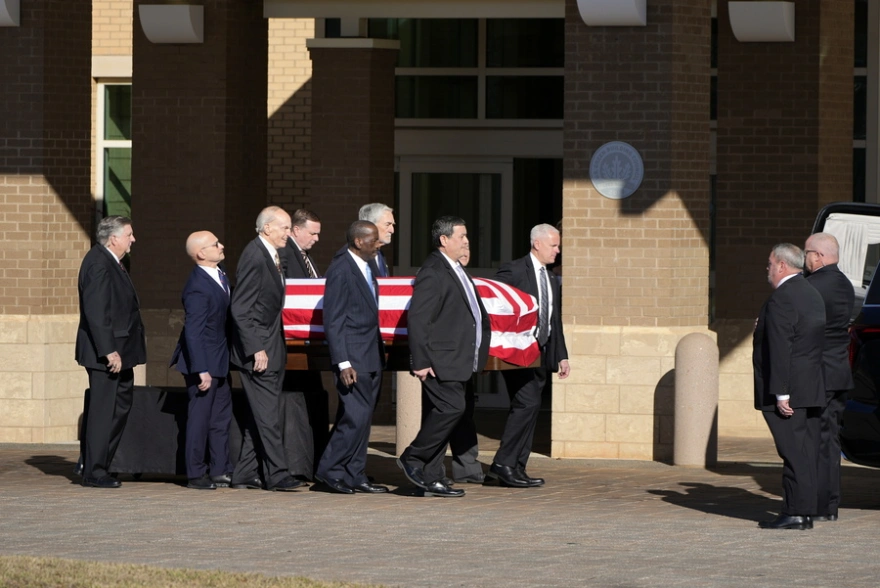 Εκεί, η σορός του θα τεθεί σε λαϊκό προσκύνημα έως το πρωί της Τρίτης, προτού μεταφερθεί στην Ουάσινγκτον, για να τεθεί σε κρατική τιμή στο Καπιτώλιο των ΗΠΑ. Η κρατική κηδεία του θα τελεστεί την Πέμπτη, στον Εθνικό Καθεδρικό Ναό της Ουάσινγκτον και ακολούθως η σορός του θα επιστρέψει στο Πλέινς για μια ιδιωτική κηδεία στην εκκλησία Μάραναθα Μπάπτιστ.