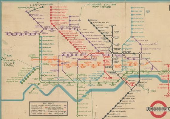 Φωτογραφία: Ένα ακυκλοφόρητο σχέδιο του χάρτη του μετρό του Χάρι Μπεκ από την πρώτη έκδοση του 1933 | The Map House
