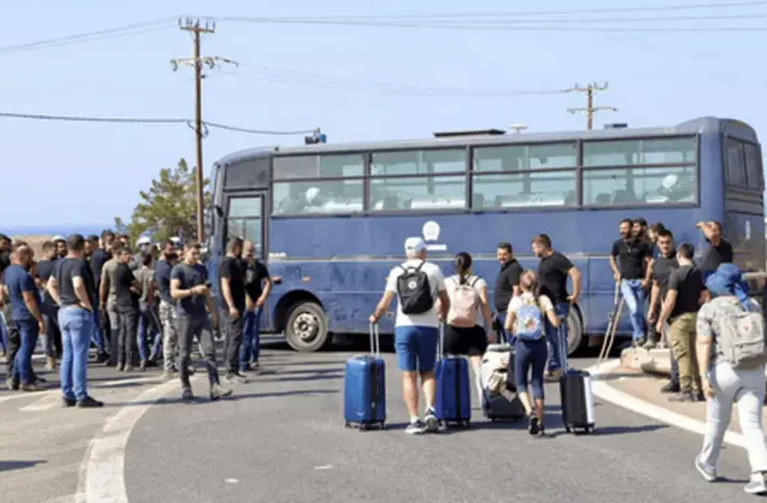 Σημειώθηκαν επεισόδια με πετροπόλεμο και χρήση χημικών γεγονός που προκάλεσε ζημιές σε αρκετά λεωφορεία αλλά και αυτοκίνητα που βρισκόταν στο πάρκινγκ έναντι του αεροδρομίου.