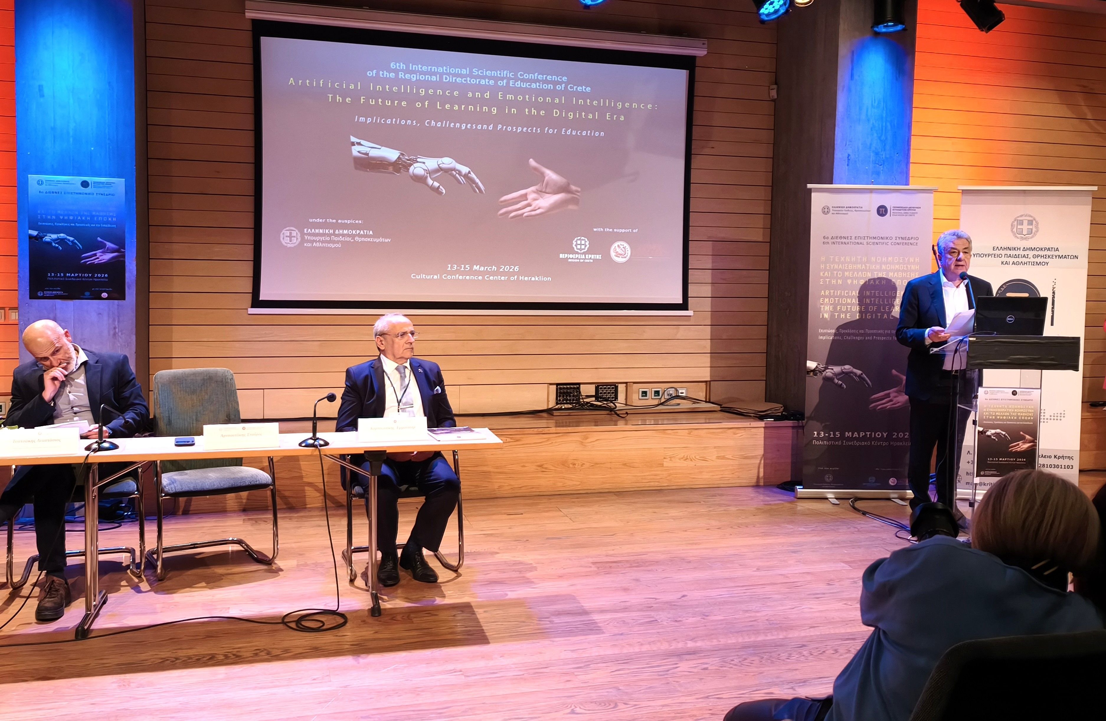 Η Περιφέρεια Κρήτης έχει εισέλθει δυναμικά στην ψηφιακή εποχή, εξοπλίζοντας τα σχολεία με εργαστήρια πληροφορικής, φορητούς ηλεκτρονικούς υπολογιστές, κιτ ρομποτικής και εργαστήρια εικονικής πραγματικότητας, διασφαλίζοντας έτσι ίσες ευκαιρίες πρόσβασης στη γνώση για τις μαθήτριες και τους μαθητές του νησιού. Αυτό τόνισε στον χαιρετισμό του ο Περιφερειάρχης Κρήτης Σταύρος Αρναουτάκης στην έναρξη του 6ου Διεθνούς Επιστημονικού Συνεδρίου, που ξεκίνησε χθες το απόγευμα (Παρασκευή) στο Πολιτιστικό Κέντρο και διοργανώνει η Περιφερειακή Διεύθυνση Εκπαίδευσης Κρήτης, με θέμα τη σχέση Τεχνητής και Συναισθηματικής Νοημοσύνης στην Ψηφιακή Εποχή.