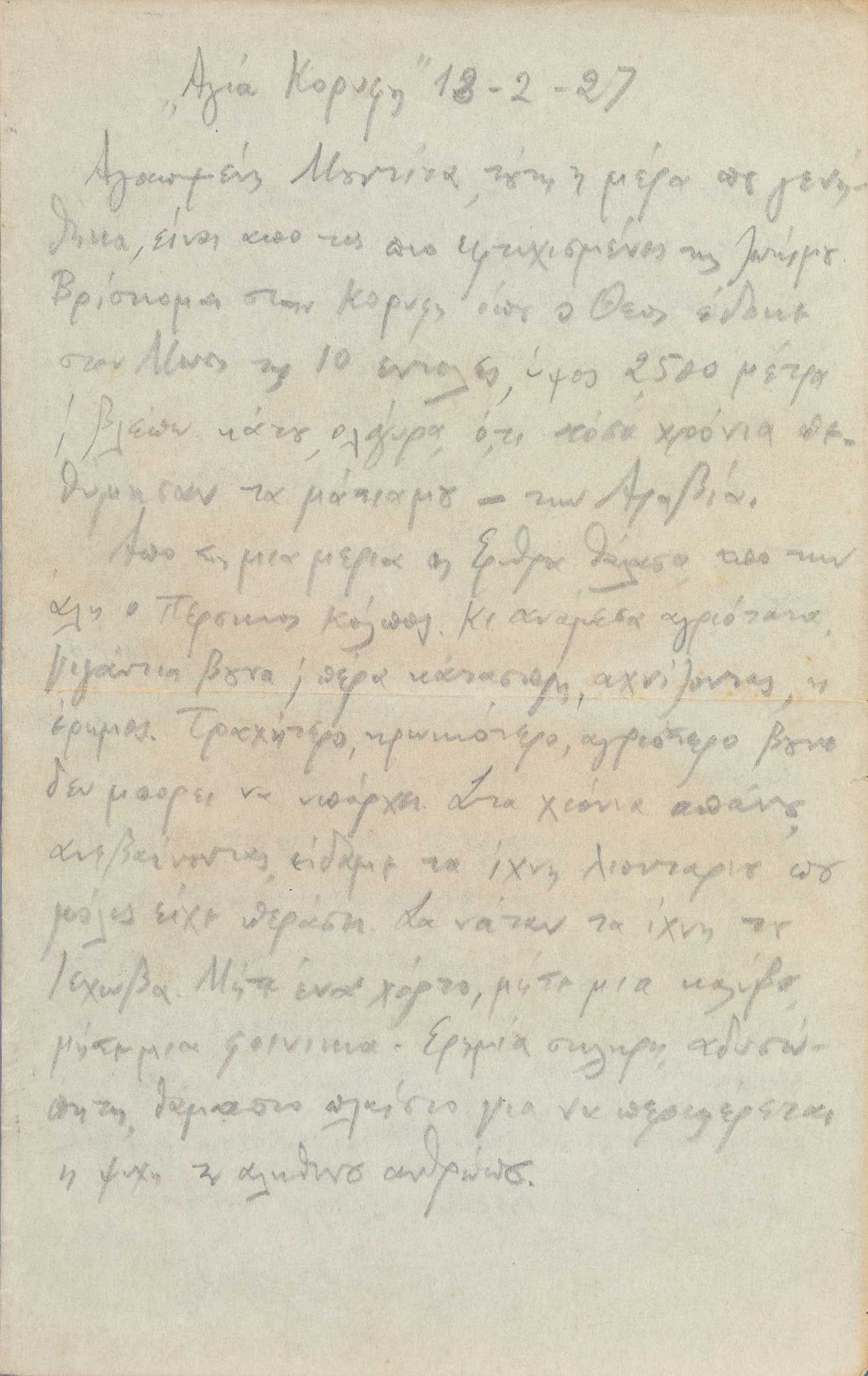 Οι περισσότερες είναι υπογεγραμμένες με αρχικό («Ν»). Ο Καζαντζάκης και η Λαμπρίδη γνωρίστηκαν το 1918 στην Ελβετία, συνδέθηκαν ερωτικά και έζησαν αρχικά μαζί οκτώ μήνες. Επανασυνδέθηκαν το 1927 για έναν περίπου χρόνο και έπειτα διατήρησαν μια στενή φιλική σχέση ως τον θάνατο του συγγραφέα το 1957. Οι επιστολές ξεκινούν από το ταξίδι του Καζαντζάκη στην Αίγυπτο, φανερώνοντας το πάθος του για τα ταξίδια και την επαφή με τη φύση. Ακολουθεί η περίοδος της διαμονής του στην Αίγινα με την αλληλογραφία να γίνεται σχεδόν καθημερινή και να αφορά σε πρακτικά αλλά και πνευματικά ζητήματα, όπως η συγγραφή της Ὀδύσσειας και οι μεταφράσεις των βιβλίων του.