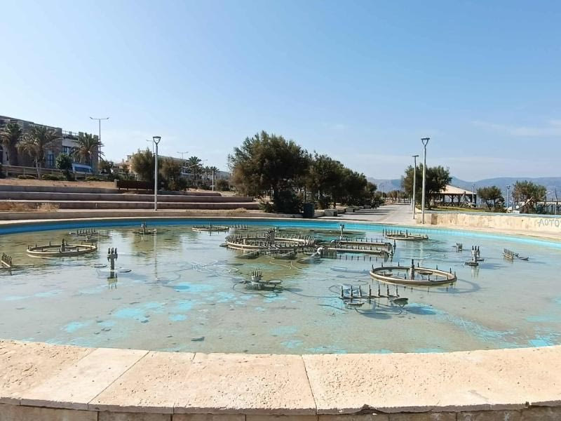 Τα σιντριβάνια όμως; Τα περισσότερα δεν έχουν νερό, μόνο σκόνες, και ένα που έχει νερό δεν δουλεύει με αποτέλεσμα να μοιάζει με μια γούρνα από την οποία προεξέχουν σίδερα.