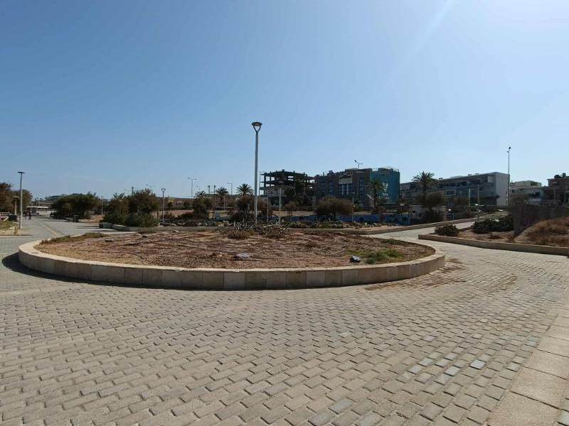 Για τα παρτέρια ούτε λόγος. Το στρογγυλό στη μέση αλλά και τα πλαϊνά διαθέτουν ξερόχορτα και πέτρες.