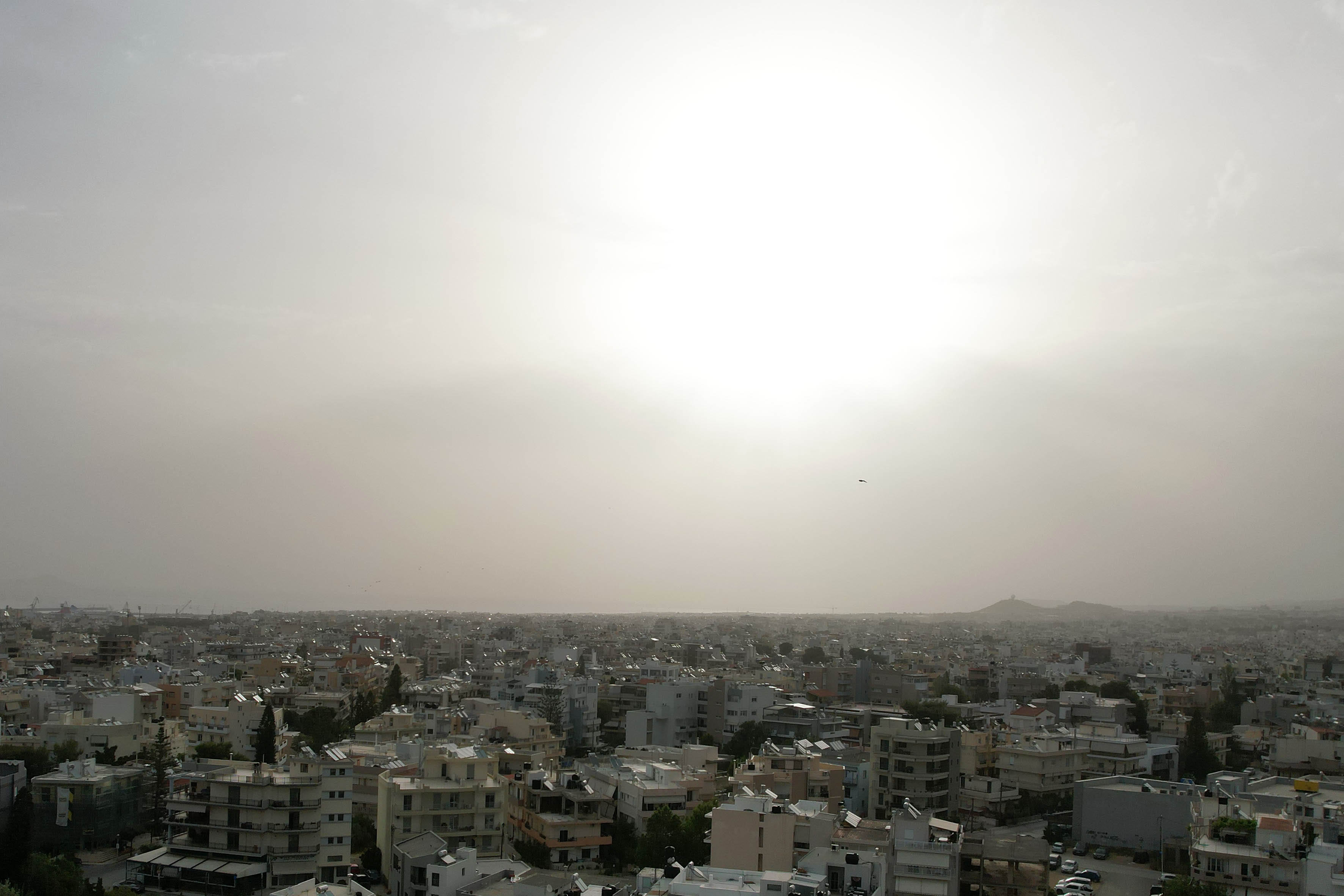 Επιμένει και σήμερα, Κυριακή, το εκρηκτικό κοκτέιλ του καιρού με την αφρικανική σκόνη και τη ζέστη, που κάνουν την ατμόσφαιρα σε όλη την Κρήτη αποπνικτική.