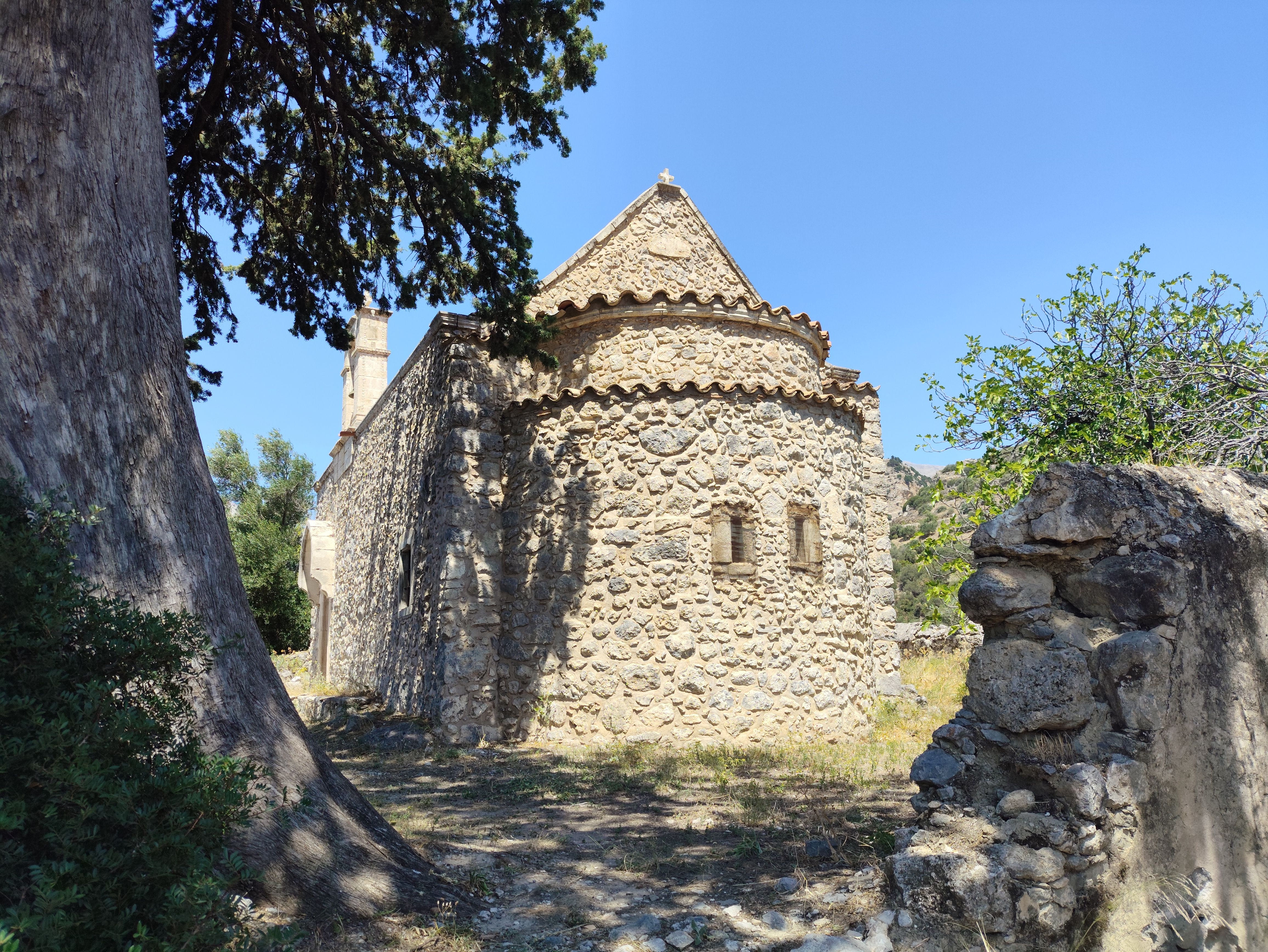 Ο ναός βρίσκεται εκεί πιθανότατα από τα ύστερα βυζαντινά χρόνια, όταν η Κρήτη βρισκόταν υπό την κυριαρχία των Ενετών. Έχει υποστεί σειρά από παρεμβάσεις και μετασκευές στο πέρασμα των αιώνων, όπως εύκολα φαντάζεται κανείς. Γύρω από την εκκλησία σώζεται περίβολος με ψηλό τοίχο, με είσοδο στα δυτικά και γκρέμισμα στα ανατολικά. Δίπλα βρίσκονται ερείπια πέτρινων κτισμάτων, κάτι που φανερώνει ότι σε άλλες εποχές ο ναός σηματοδοτούσε κάτι σαφώς πιο σημαντικό από ένα ξωκκλήσι,, ίσως καθολικό μονής ή έδρα επισκοπής. Ο χώρος γύρω από την εκκλησία δεν ήταν πλήρως καθαρισμένος και επιμελημένος, όταν εμείς βρεθήκαμε εκεί. Η εικόνα του ίδιου του πετρόχτιστου ναού όμως ήταν πολύ καλή.