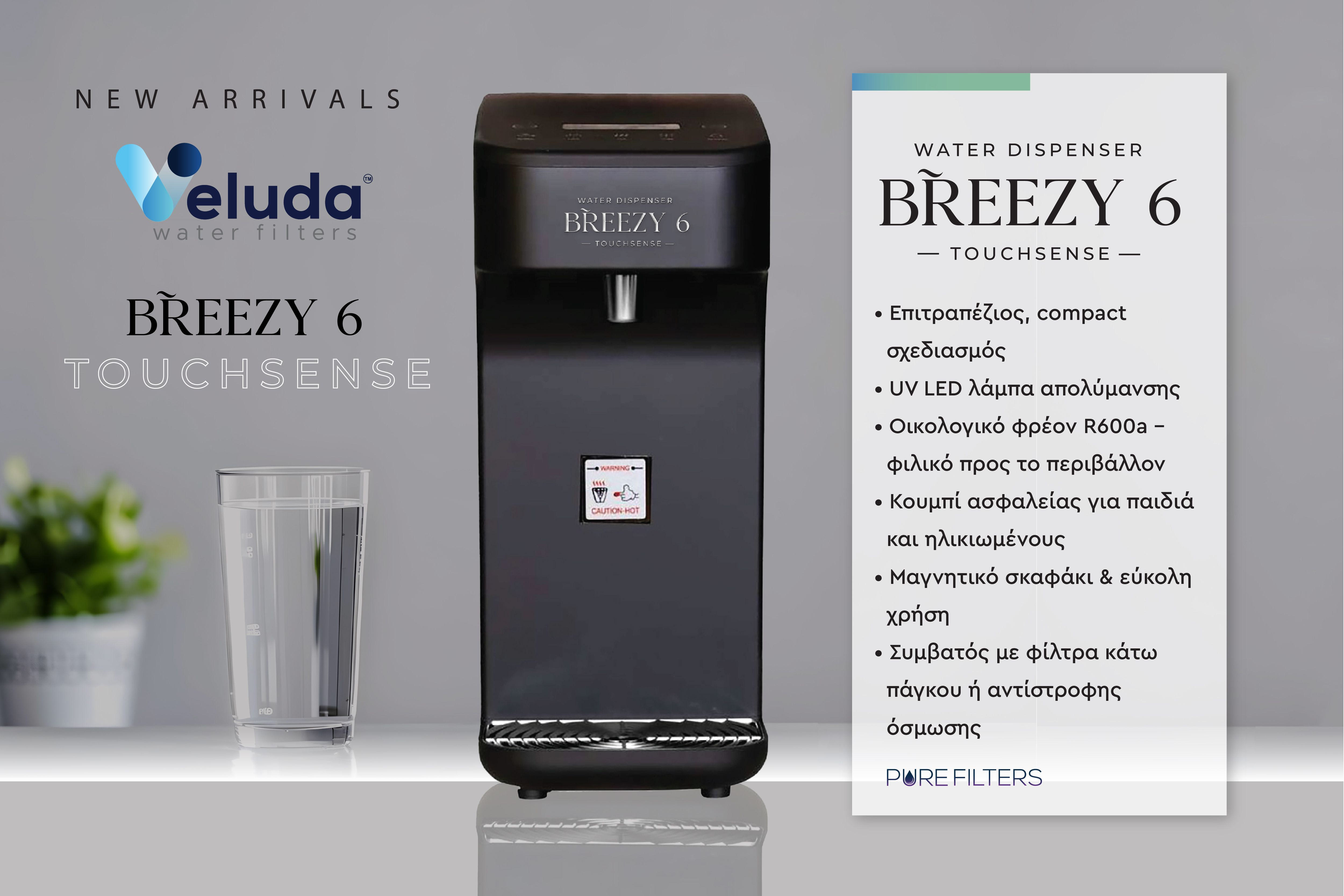 Επίλεξε Breezy. Επίλεξε ποιότητα, ασφάλεια και design από τη Veluda Water Filters.