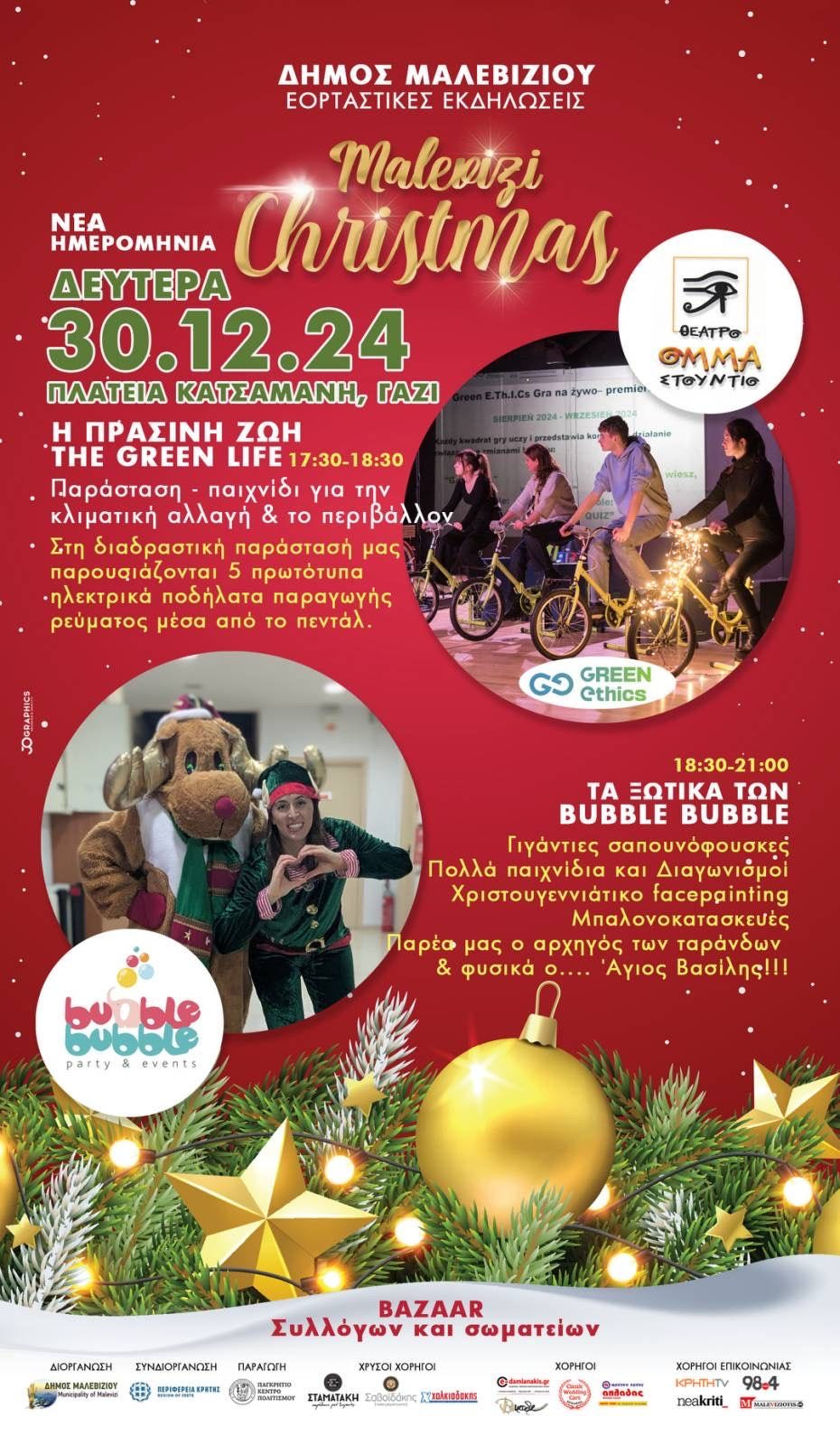 Τα χαρούμενα ξωτικά θα γεμίσουν την πλατεία με ζωντάνια, προσφέροντας παιχνίδια, διαγωνισμούς, face painting και μπαλονοκατασκευές που θα χαρίσουν χαμόγελα και αξέχαστες στιγμές.
