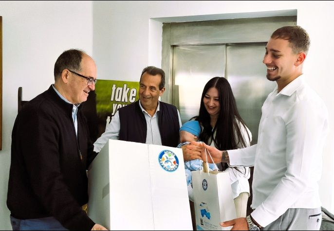 Ιδιαίτερη στιγμή της φετινής δράσης αποτέλεσε η επίσκεψη στο Δημοτικό Κατάστημα Λιμένα Χερσονήσου, της οικογένειας του πρώτου μωρού που γεννήθηκε στην Κρήτη το 2026. Οι γονείς, κρατώντας στην αγκαλιά το νεογέννητο, επισκέφθηκαν το Δημοτικό Κατάστημα και τις Κοινωνικές Υπηρεσίες, όπου ο Δήμαρχος Χερσονήσου τους υποδέχθηκε και παρέδωσε μια συσκευασία με δώρα για το μωρό, αναμνηστικά και προϊόντα για το πασχαλινό τους τραπέζι. Η συμβολική αυτή πράξη ενίσχυσε το ανθρώπινο μήνυμα της «Πασχαλινής Αγκαλιάς», υπογραμμίζοντας ότι η φροντίδα και η στήριξη ξεκινούν από τις πρώτες κιόλας στιγμές της ζωής.