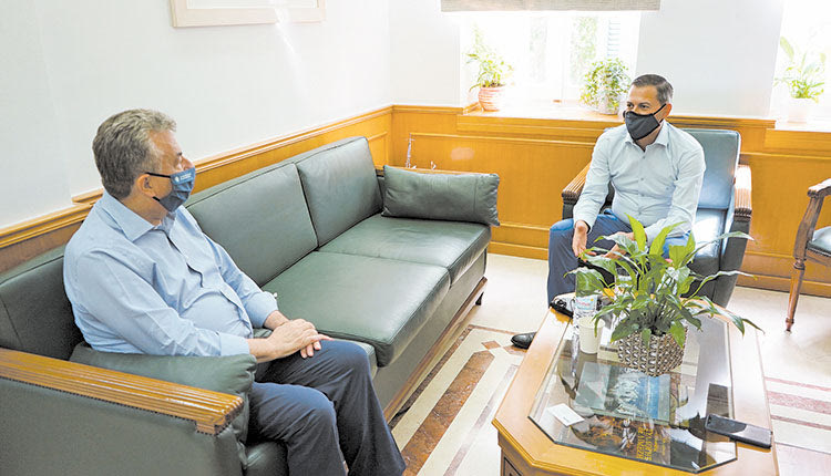 Με τον αντιπεριφερειάρχη Αγροτικής Ανάπτυξης Δυτικής Ελλάδας Θεόδωρο Βασιλόπουλο συναντήθηκε ο περιφερειάρχης Κρήτης Σταύρος Αρναουτάκης.