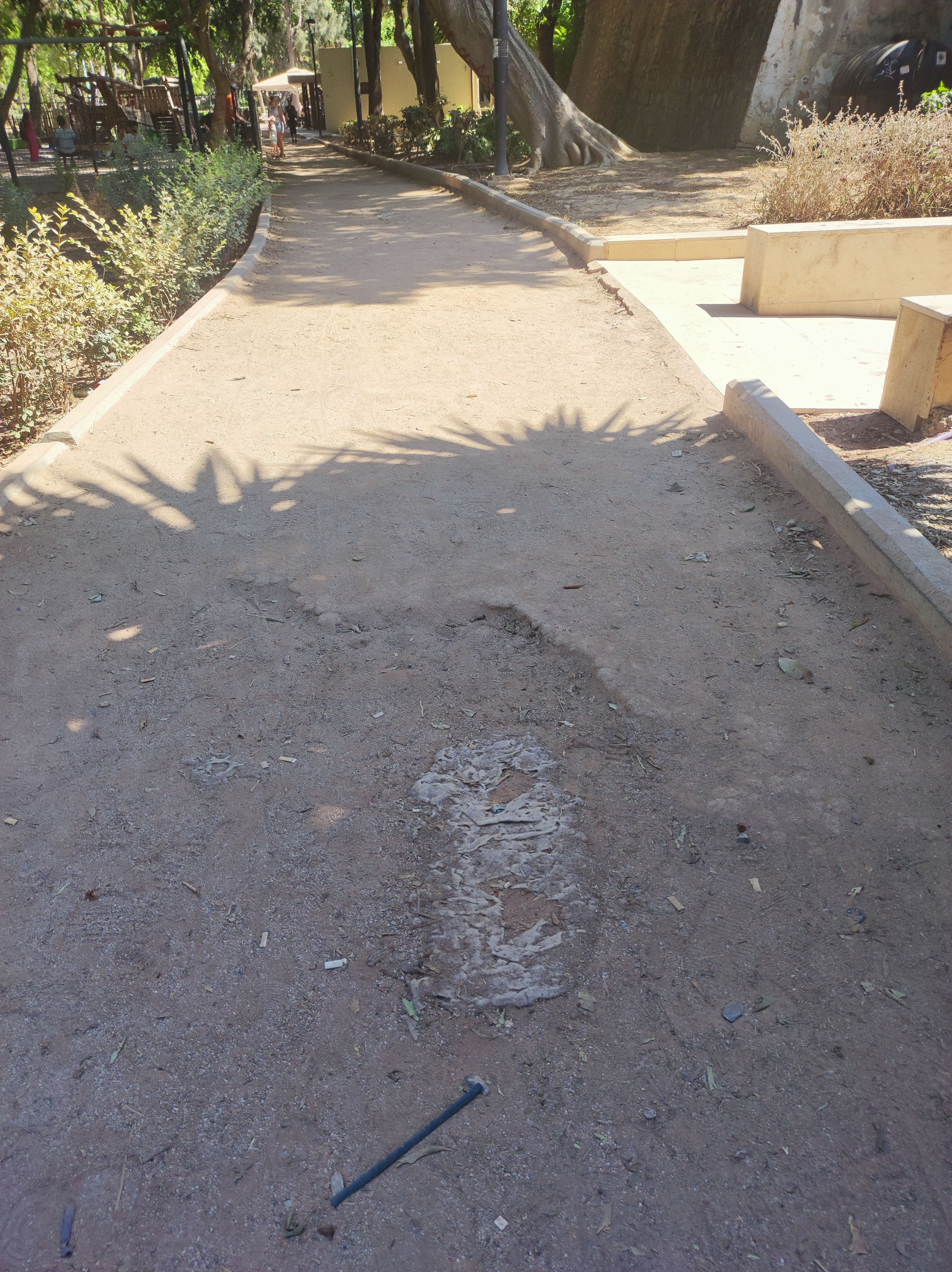 Ωστόσο η συμπαγής κατασκευή που είχε γίνει στους διαδρόμους του πάρκου είναι θρυμματισμένη και παραμένει χρόνια σε αυτή την άθλια κατάσταση, αφού δεν υπάρχει καμία μέριμνα για την αποκατάστασή της.