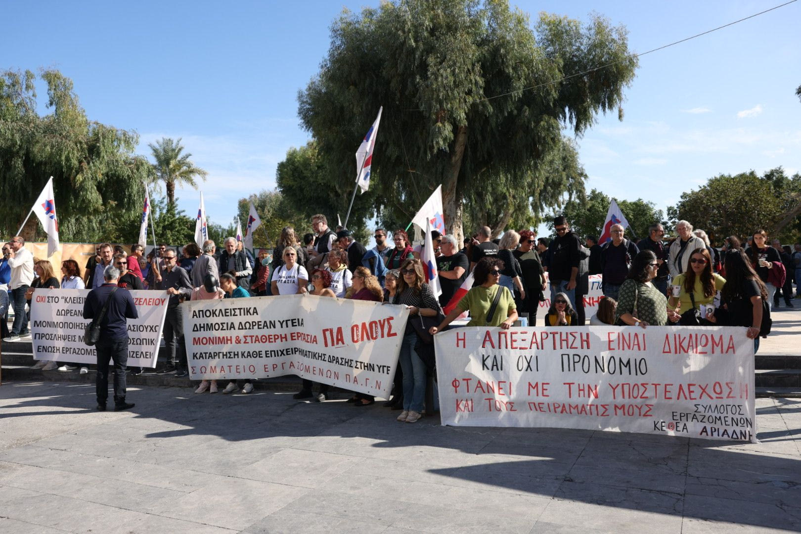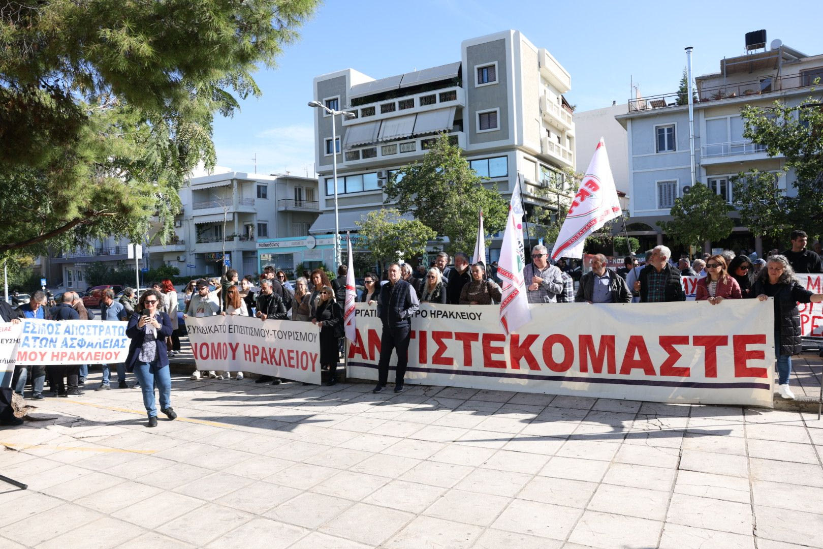 Στο Ηράκλειο, πλήθος κόσμου συμμετέχει στις απεργιακές συγκεντρώσεις που διοργανώνονται σήμερα σε διάφορα σημεία της πόλης, όπως το Εργατικό Κέντρο, η πλατεία Ελευθερίας και το άγαλμα του Βενιζέλου.