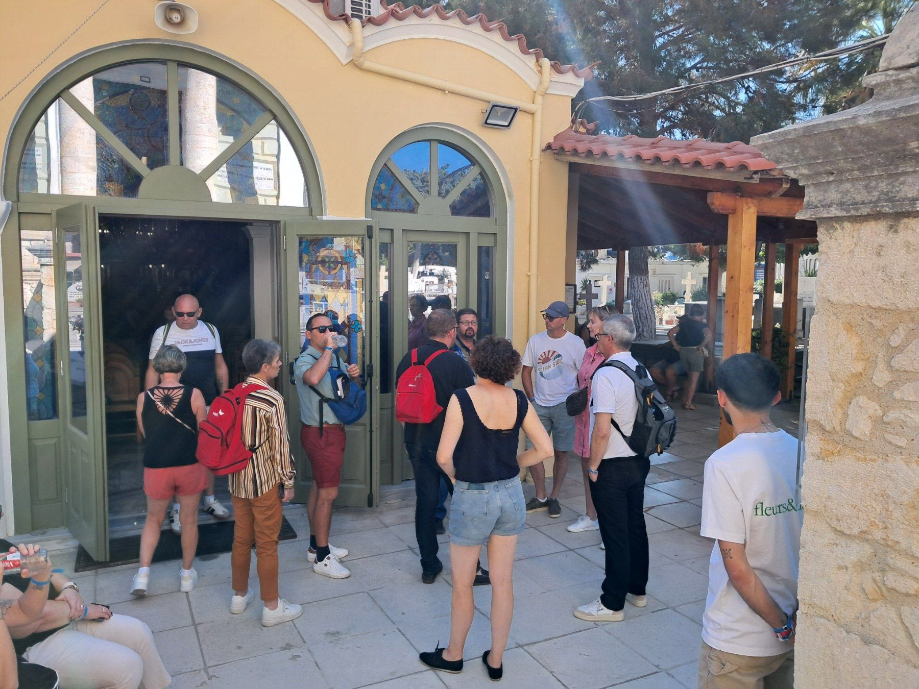 Μάλιστα κατά την διάρκεια της ξενάγησης είδαν μία μητέρα να αφήνει δύο τσιγάρα και όταν ο πατήρ Κωνσταντίνος τους περιέγραψε πως συχνά αφήνουν πράγματα στους νεκρούς εκείνοι συγκινήθηκαν.