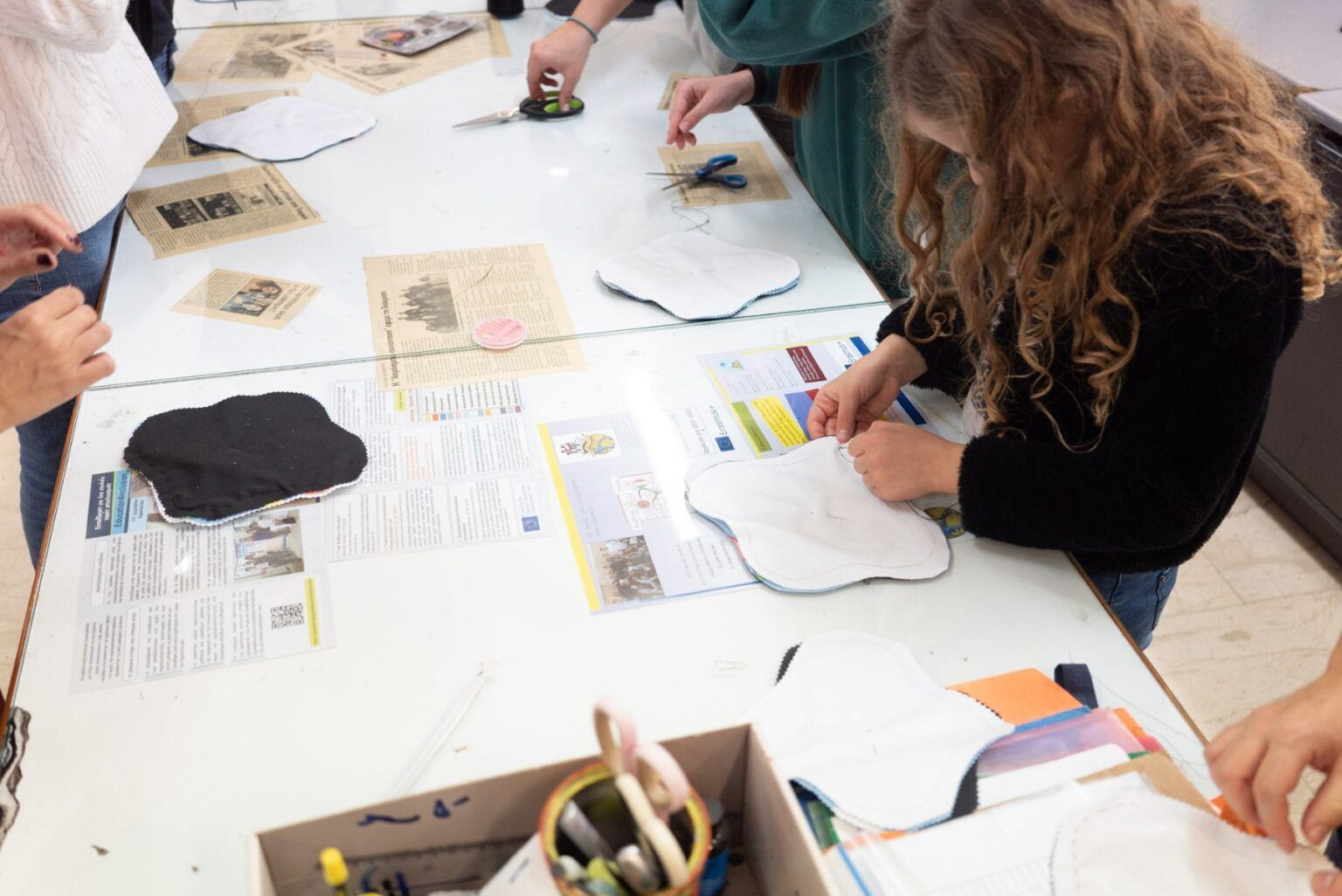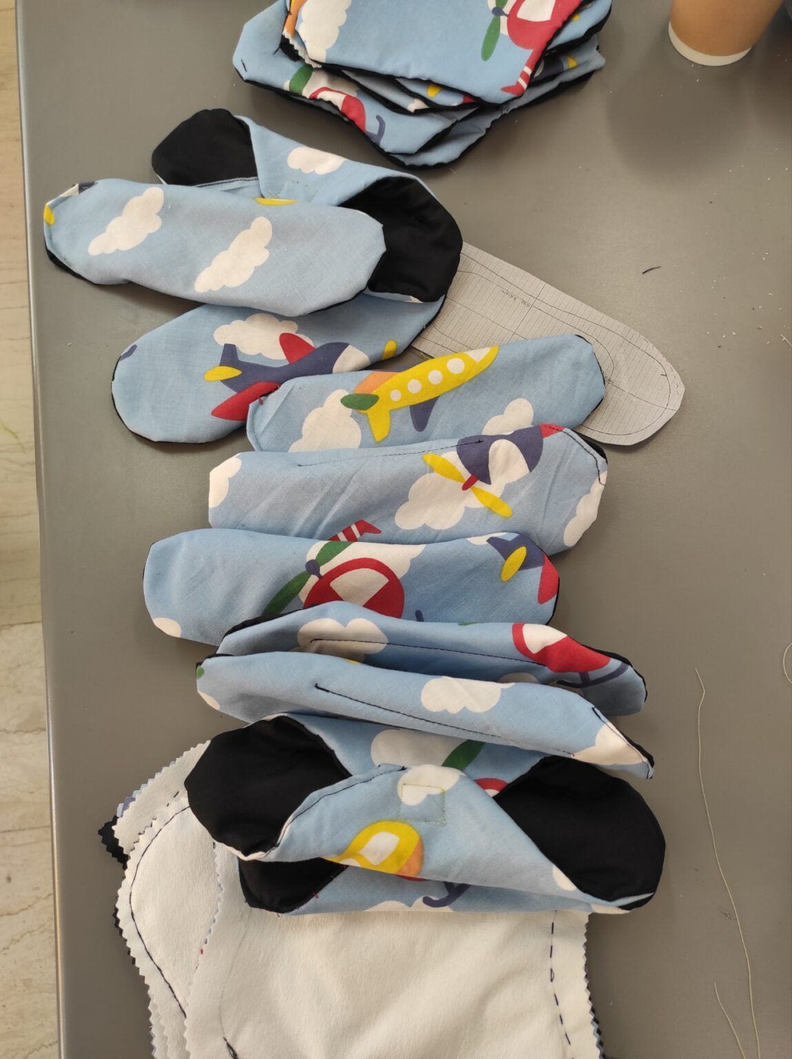 Αφού ενημερώθηκαν για τις συνθήκες διαβίωσης και υγιεινής των κοριτσιών, έραψαν σερβιέτες για τα κορίτσια της Ουγκάντα.