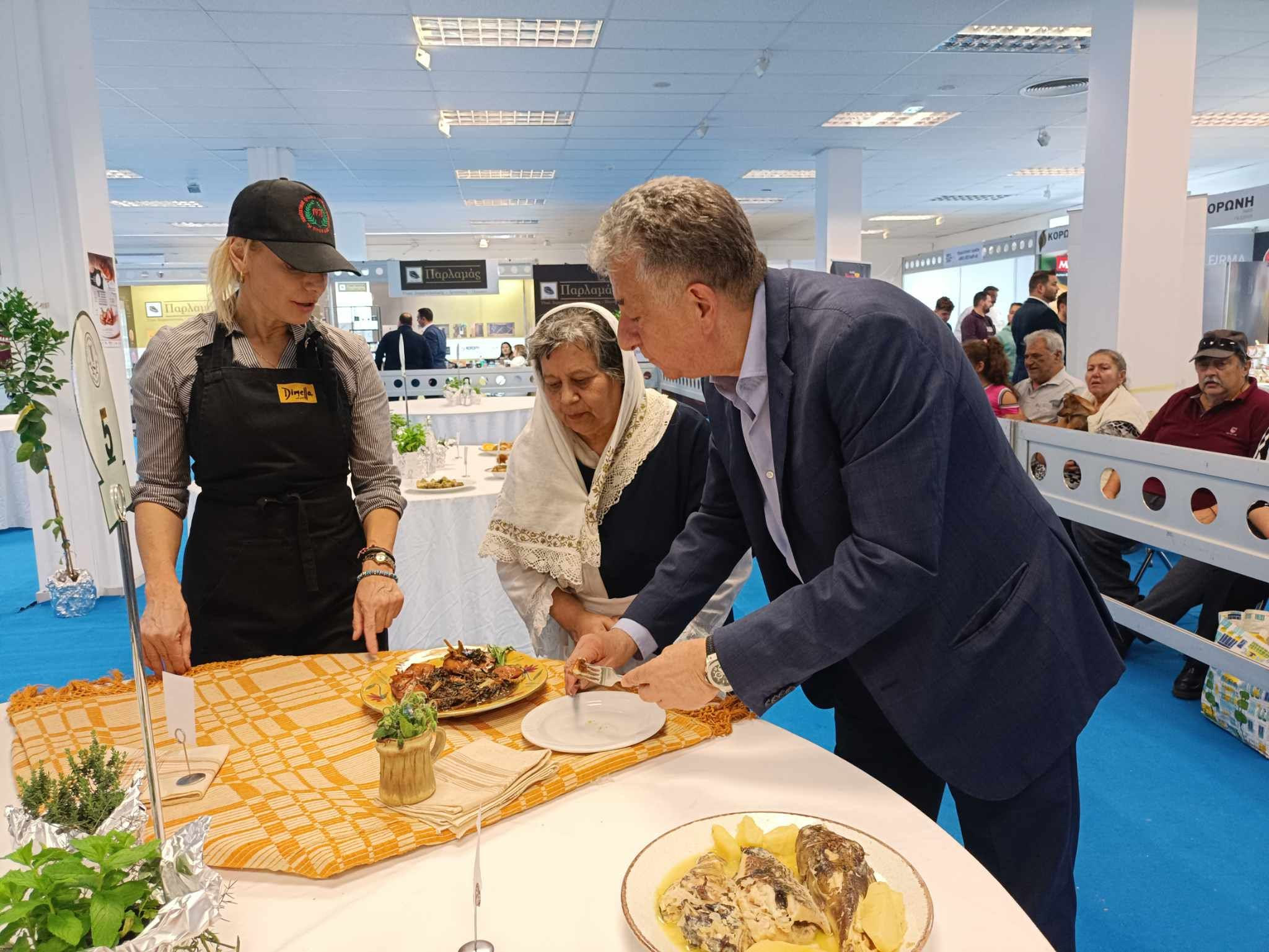 Ιδιαίτερα θερμός και επικοινωνιακός ήταν κατά την παρουσία του στο διαγωνισμό ο περιφερειάρχης, Σταύρος Αρναουτάκης. Χαιρέτησε, έκανε βόλτα στα περίπτερα, φωτογραφήθηκε αλλά στη συνέχεια πήγε ένα βήμα παρακάτω. Πέρασε μέσα από το διαχωριστικό στον χώρο της μαγειρικής. Κατευθύνθηκε στο τραπέζι με το φαγητό, σερβιρίστηκε ενώ ήταν όρθιος και άρχισε να δοκιμάζει, με τη μαγείρισσα να δείχνει ιδιαίτερα ευχαριστημένη που τίμησε το φαγητό της.