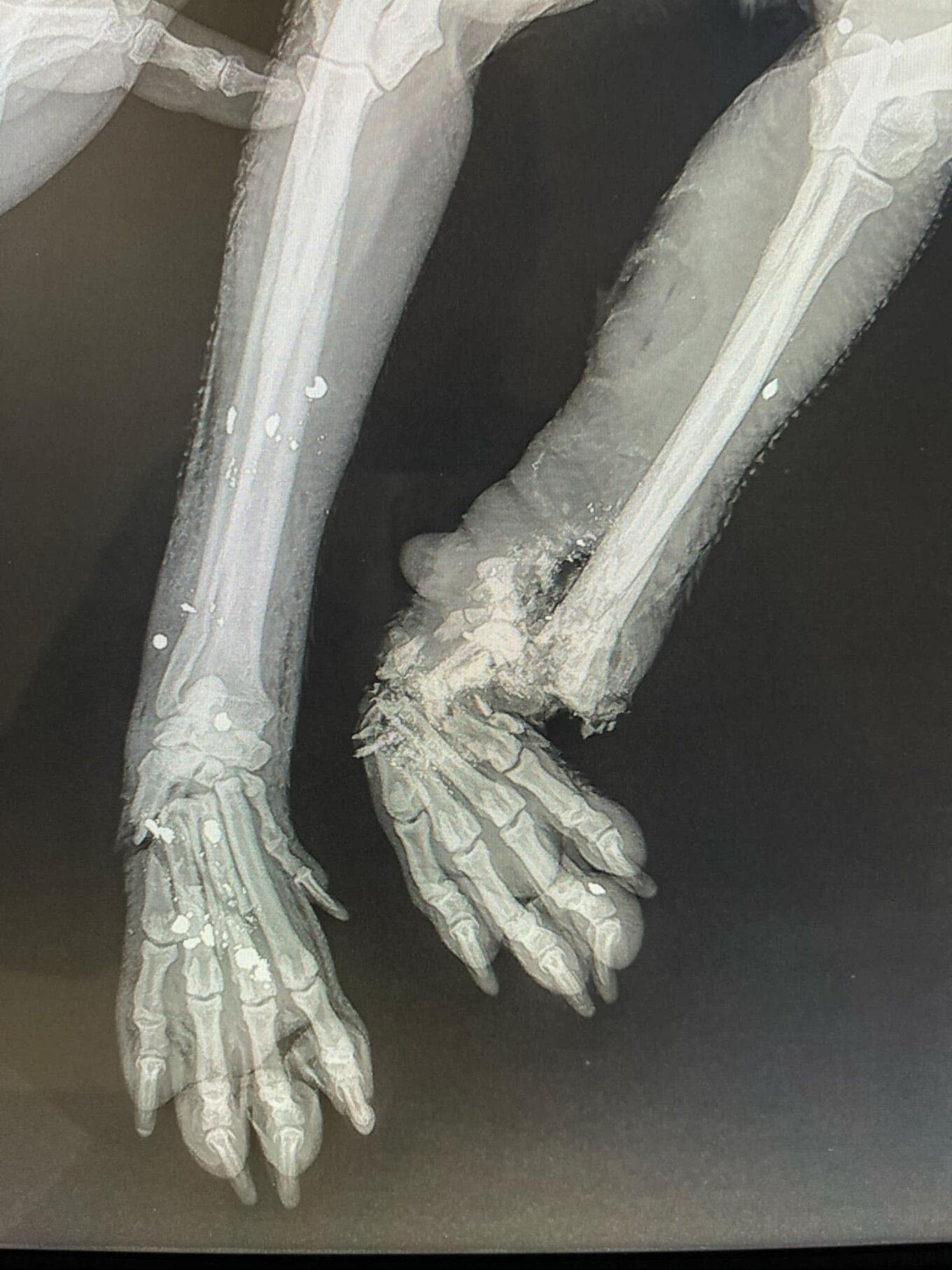 Παρά τις προσπάθειες των κτηνιάτρων, χρειάστηκε ακρωτηριασμός ενός ποδιού.