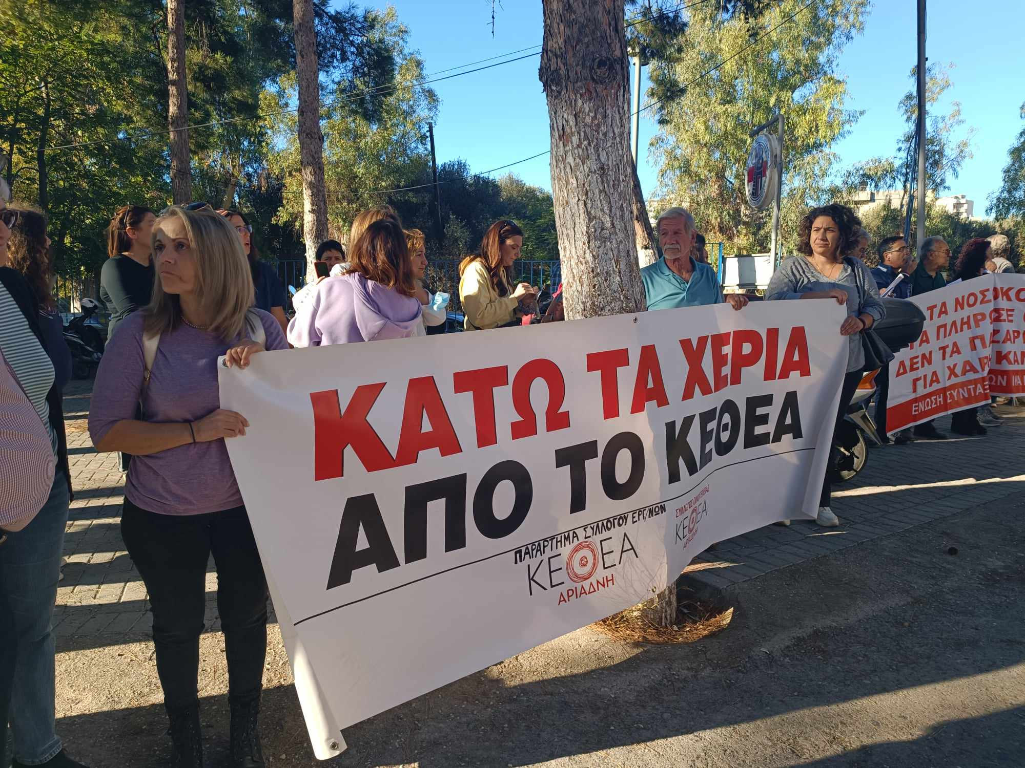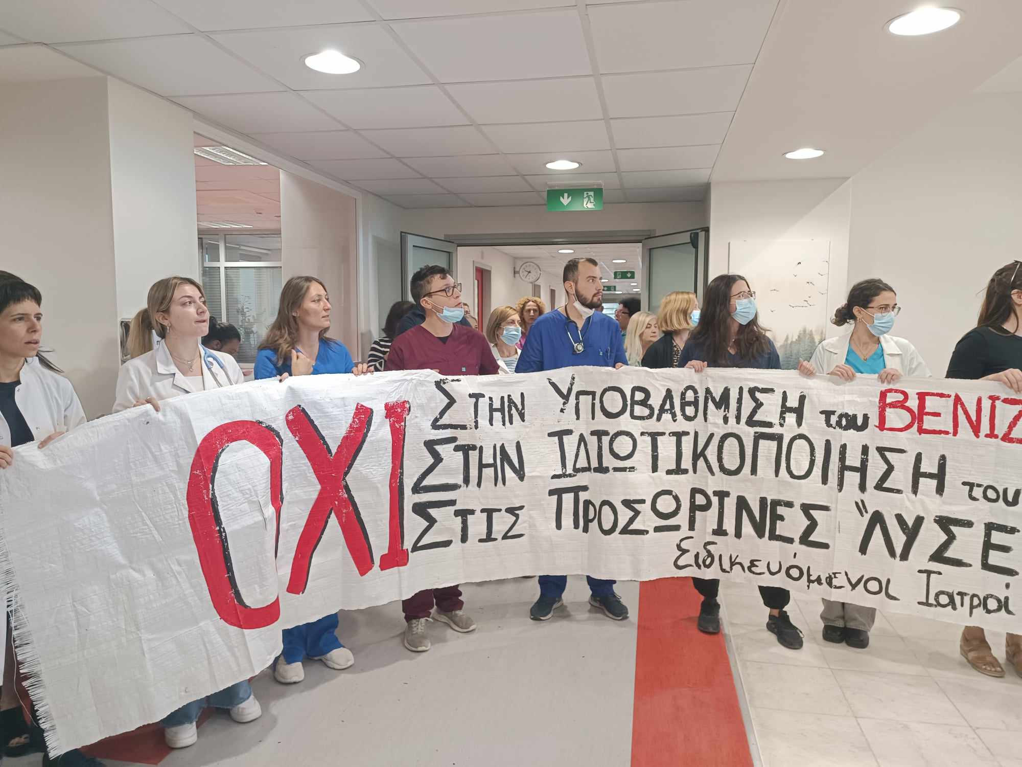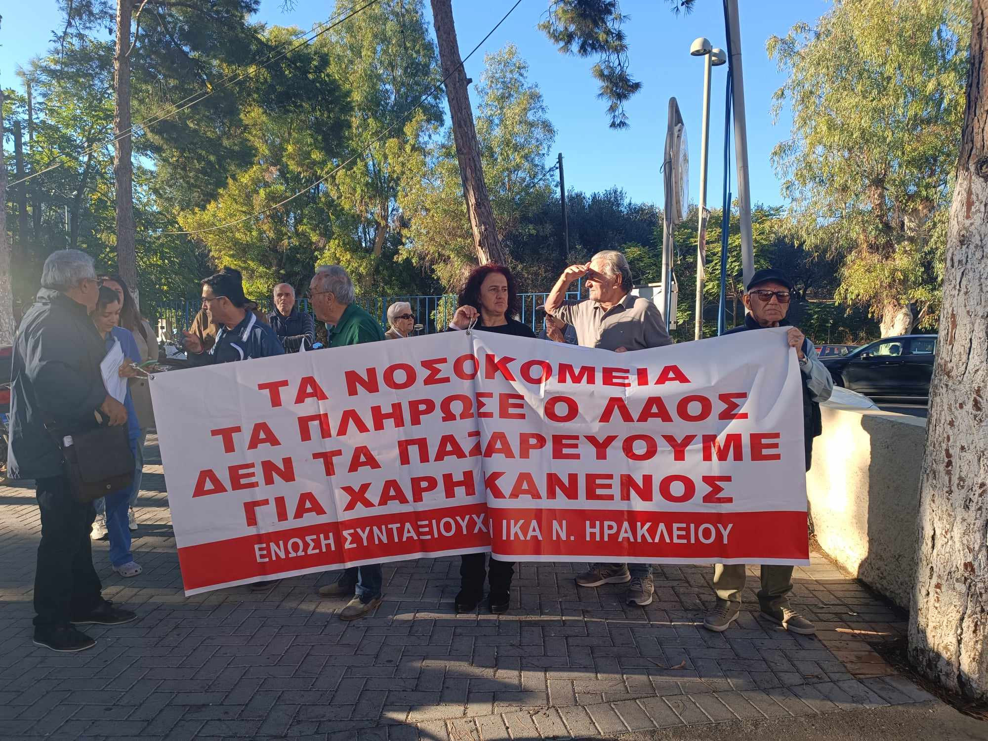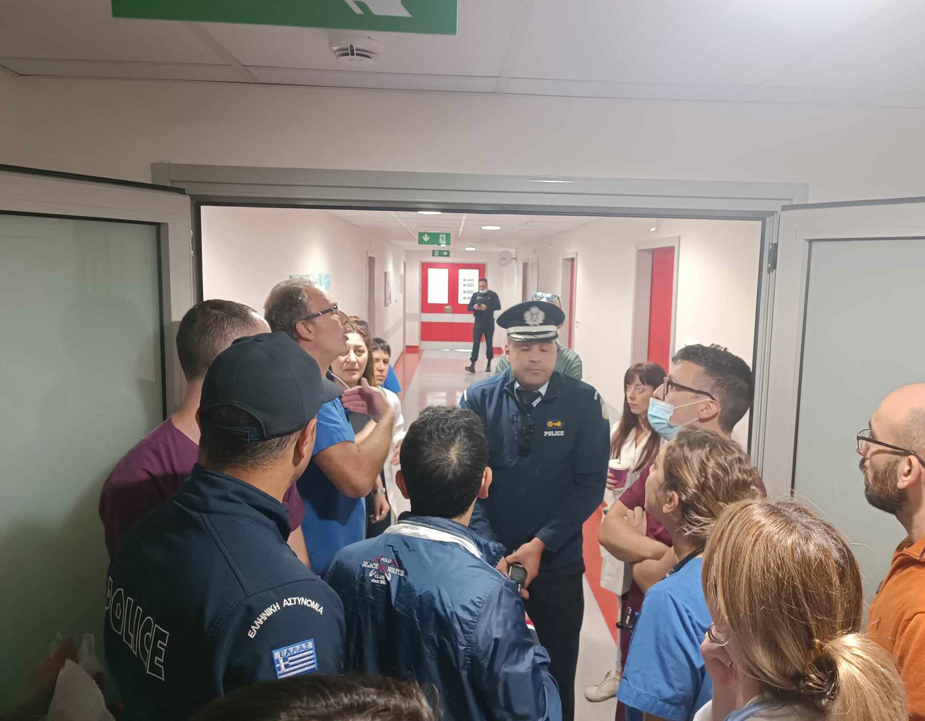 Δεκάδες ήταν οι συγκεντρωμένοι στην είσοδο του Βενιζέλειου Νοσοκομείου κατά την άφιξη του Υπουργού Υγείας κ. Μιχάλη Χρυσοχοΐδη.