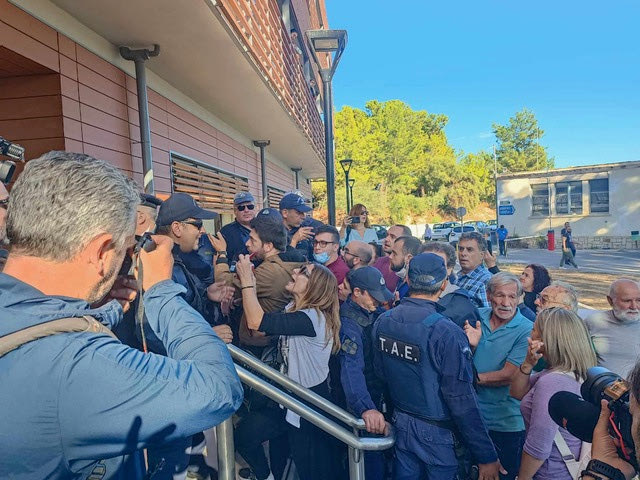 Εργαζόμενοι,συνταξιούχοι και εκπρόσωποι τοπικών φορέων ,είχαν απο νωρίς συγκεντρωθεί στο Βενιζέλειο και δημιουργήθηκαν εντάσεις με τους αστυνομικούς που τους εμπόδιζαν να μπουν εντός του κτηρίου,επιτρέποντας την είσοδο μόνο στους εκπροσώπους τους.