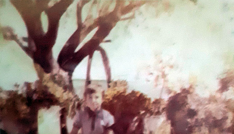 Εκεί που τέλειωνε η αυλή, από την ανατολική της πλευρά, ξεκινούσε ο κήπος της κυράς Ερήνης. Ένας κήπος με αναρριχώμενα φυτά, με λεμονιές, πορτοκαλιές, ενώ μια τεράστια μπουρνελιά που είχε τις ρίζες της μέσα στον κήπο, έγερνε με τα κλαριά της πάνω από την αυλή, σαν να μας «παρακολουθούσε». Είχαμε λόγους τότε όλοι μας να αισθανόμαστε, πως κάποιος μας παρακολουθεί.
