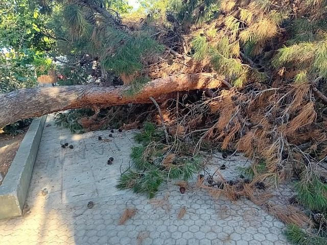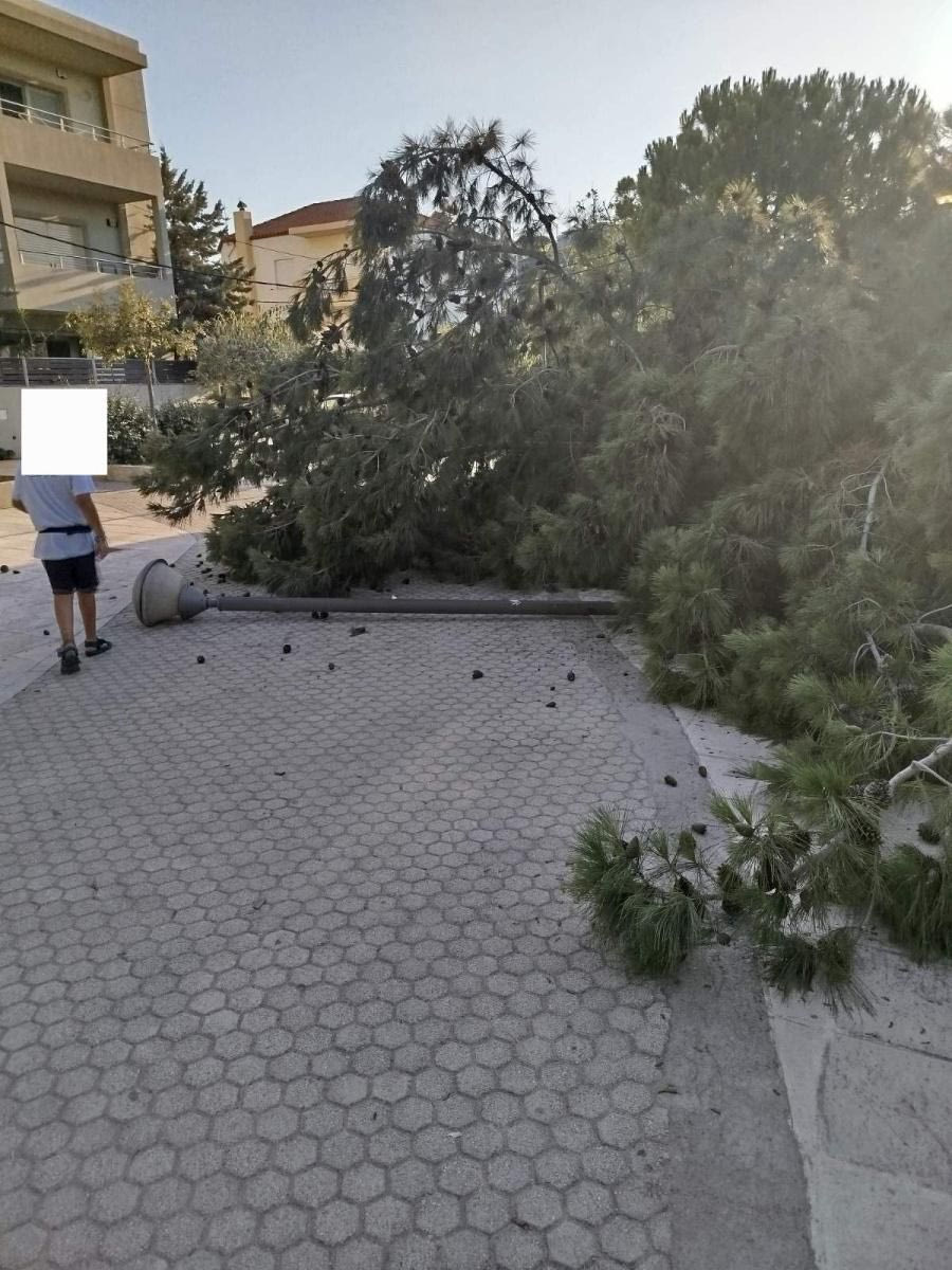 Το δέντρο έπεσε στην περιοχή των παγκάκων, παρασύροντας και έναν στύλο φωτισμού. Άμεσα ενημερώθηκαν οι Αρχές και υπήρξε αναστάτωση στην περιοχή.