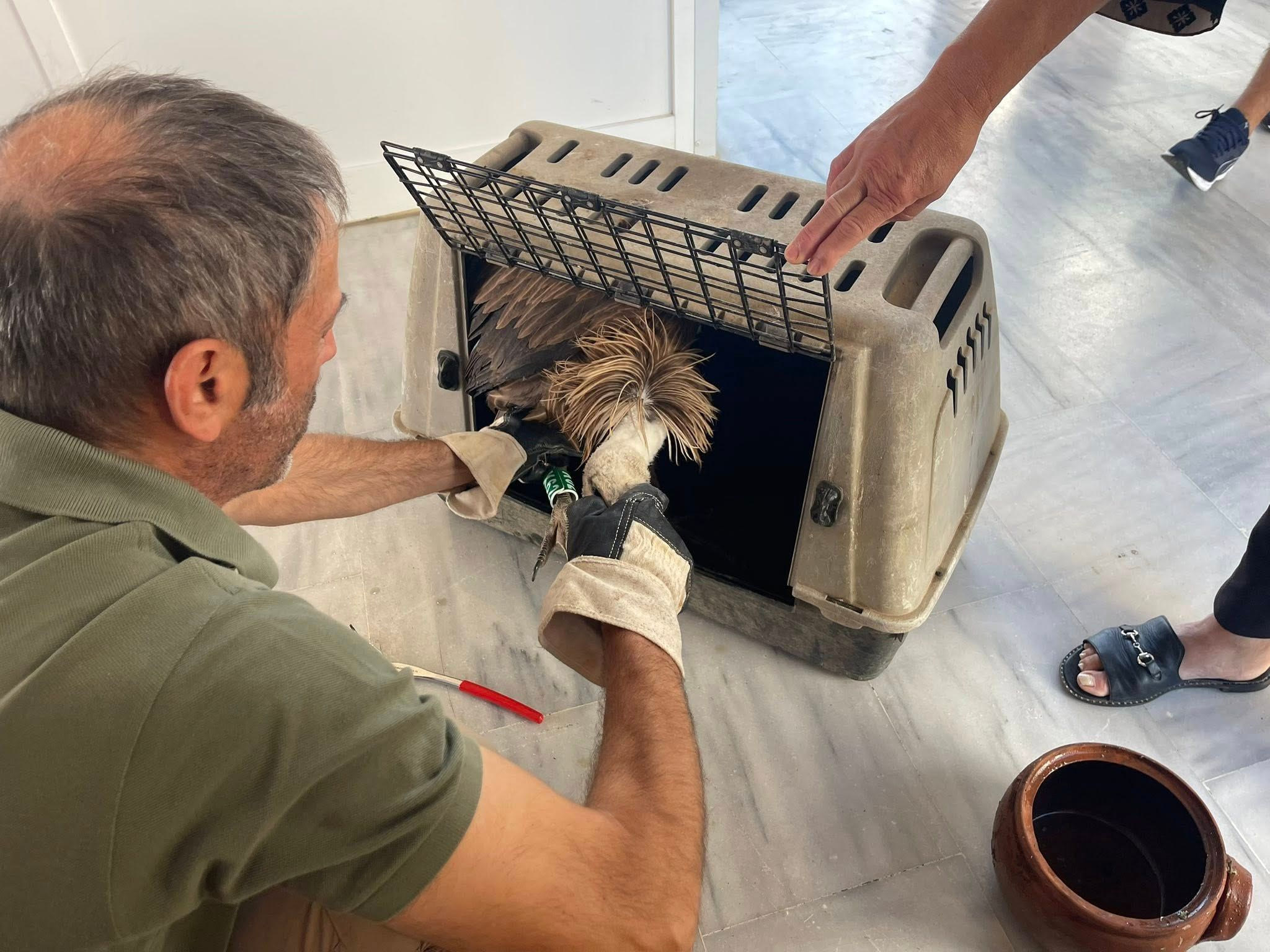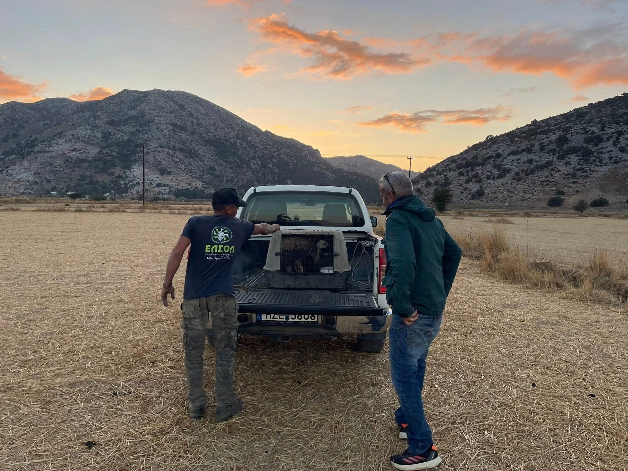 Διάσωση γύπα αργά το απόγευμα της Δευτέρας στο Οροπέδιο Λασιθίου μέσα στον κάμπο, λίγες εκατοντάδες μέτρα μακριά απο τη μονή Βιδιανής.