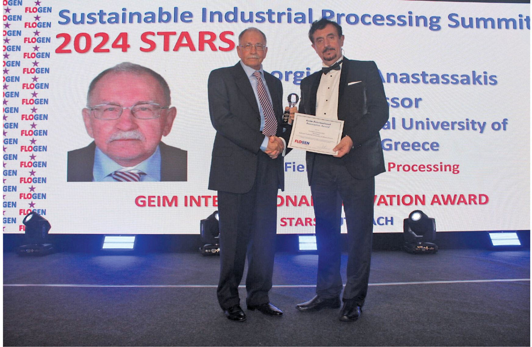 Το βραβείο απονεμήθηκε από τον δρ. Florian Kongoli, πρόεδρο του Οργανισμού FLOGEN. Παράλληλα, διοργανώθηκε προς τιμή του καθ. κ. Γεωργίου Αναστασάκη Διεθνές Συμπόσιο με το όνομά του, το οποίο είναι μέρος της Συνόδου SIPS 2024 για την Αειφορία «Sustainable Industrial Processing Summit (SIPS 2024)», που διοργανώθηκε στο ξενοδοχείο Out of the Blue Resort, Αγία Πελαγία, μεταξύ 20 και 24 Οκτωβρίου.