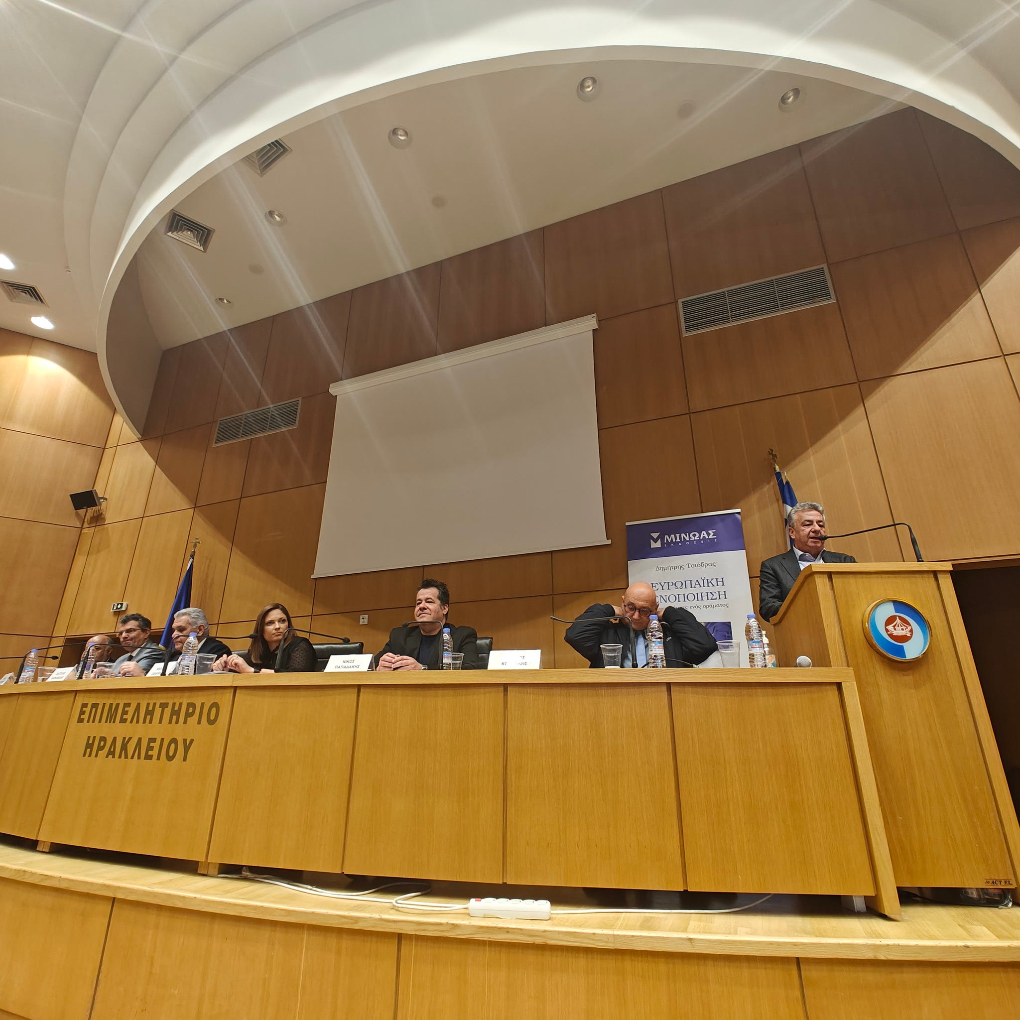 O διευθυντής του γραφείου Τύπου του Πρωθυπουργού, Δημήτρης Τσιόδρας παρουσίασε στο Επιμελητήριο Ηρακλείου ένα πλούσιο εγχειρίδιο που αφορά το όραμα της Ευρωπαϊκής εννοποίησης.