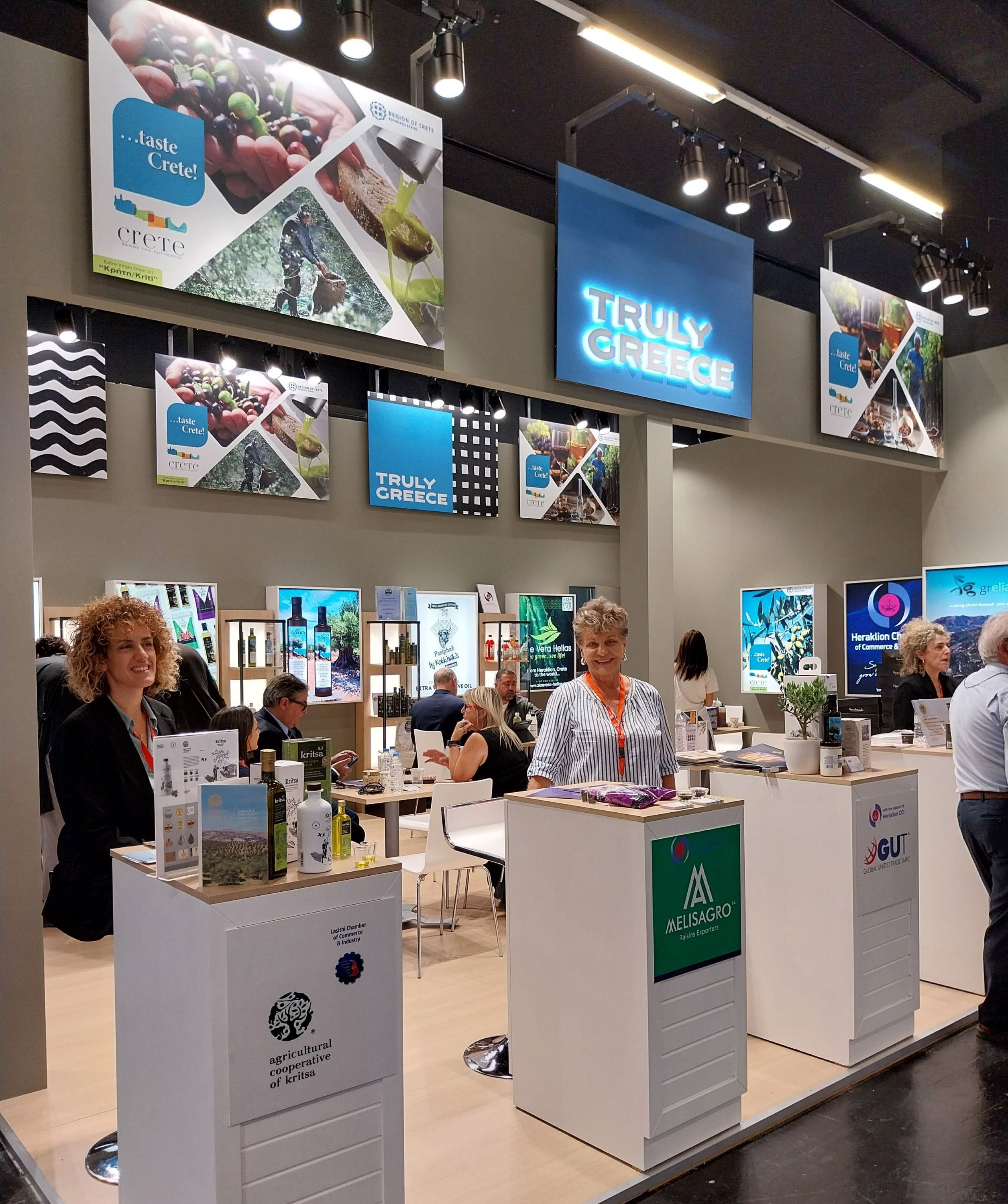 Στο Περίπτερό της η Περιφέρεια Κρήτης σε συνεργασία με τα αντίστοιχα Επιμελητήρια του νησιού φιλοξένησε 6 επιχειρήσεις, δίνοντάς τους την ευκαιρία να παρουσιάσουν και να αναδείξουν τα μοναδικά τοπικά τους προϊόντα στη διεθνή αγορά και τη δυνατότητα άμεσων επαφών B2B με αγοραστές και διεθνή δίκτυα διανομής.