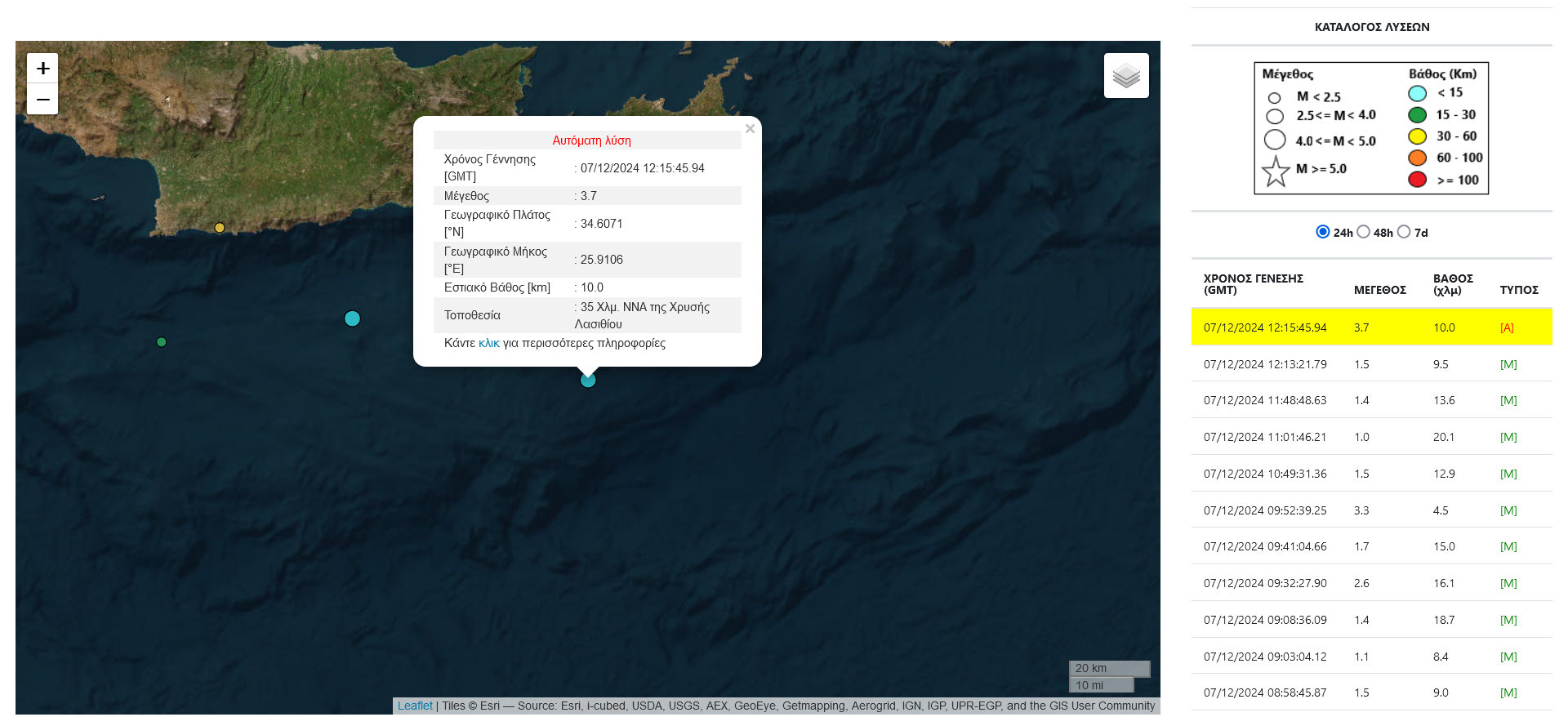 Σεισμός μεγέθους 3,7 της κλίμακας Ρίχτερ σημειώθηκε στον θαλάσσιο χώρο ανοιχτά της Κρήτη.