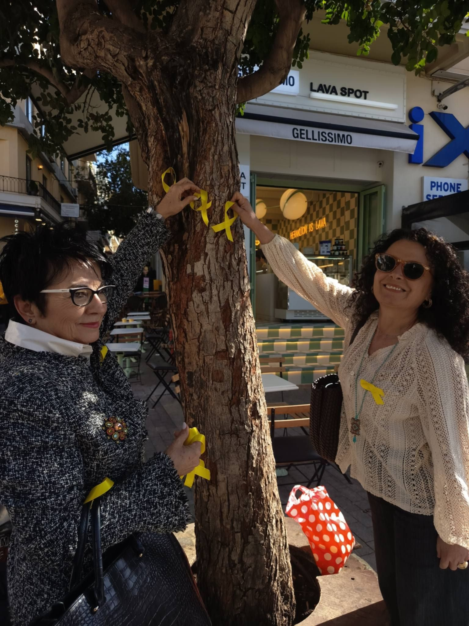 Η δράση που συγκίνησε πολύ κόσμο περιλάμβανε τον συμβολικό στολισμό δέντρων με κίτρινες υφασμάτινες κορδέλες τις οποίες έφτιαξαν τα μέλη της Γραμματείας Δικαιωμάτων του Παιδιού της Ν.Δ.