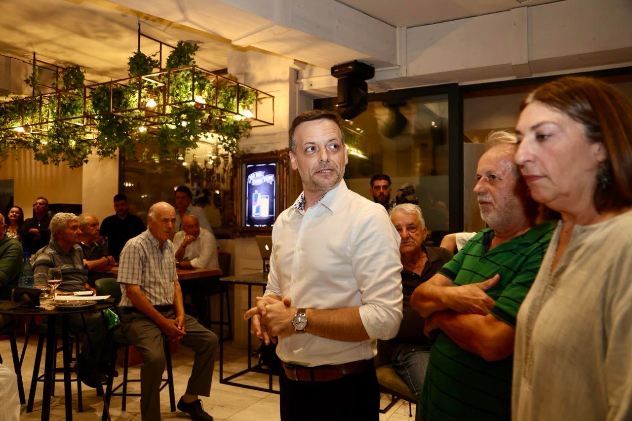 Ο κ. Δούκας μίλησε μπροστά σε στελέχη του κινήματος και φίλους του κόμματος, στον εσωτερικό χώρου του ”Παγοποιείου”, στο κέντρο της πόλης.