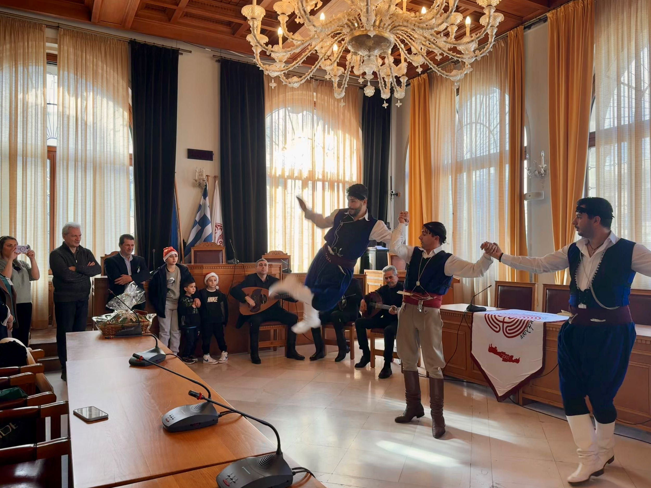 Τα παιδιά έψαλαν τα κρητικά κάλαντα συνοδεία και λύρας, αλλά και τα γερμανικά όπως και τα γαλλικά κάλαντα, τα οποία μάλιστα έψαλε μαζί τους και ο Αλέξης Καλοκαιρινός. Λίγο αργότερα, ο Δήμαρχος και ο Αντιδήμαρχος Παιδείας άκουσαν τα Κρητικά κάλαντα και τα κάλαντα της Ικαρίας με τη συνοδεία μουσικών οργάνων, από μαθητές και μαθήτριες του 6ου και 44ου Δημοτικού Σχολείου, που συνοδευόταν από τις Διευθύντριες Εμμανουέλα Περισυνάκη και Μαριλένα Παπαζαχαριάκη αντίστοιχα και τους εκπαιδευτικούς Χαρά Σταματοπούλου, Αννα Καλπαδάκη, Έλενα Μανιάκα, Γιώργο Κουκάκη και Έλενα Χανδόλια.