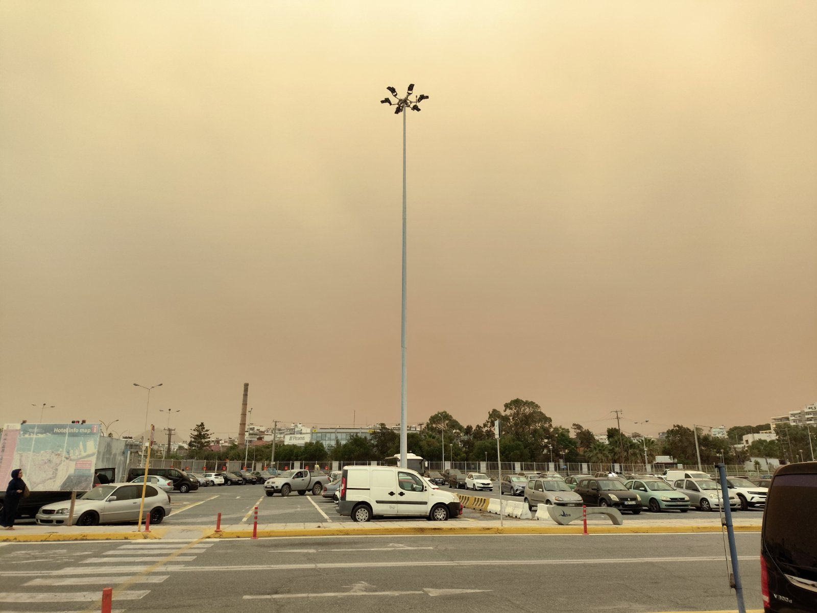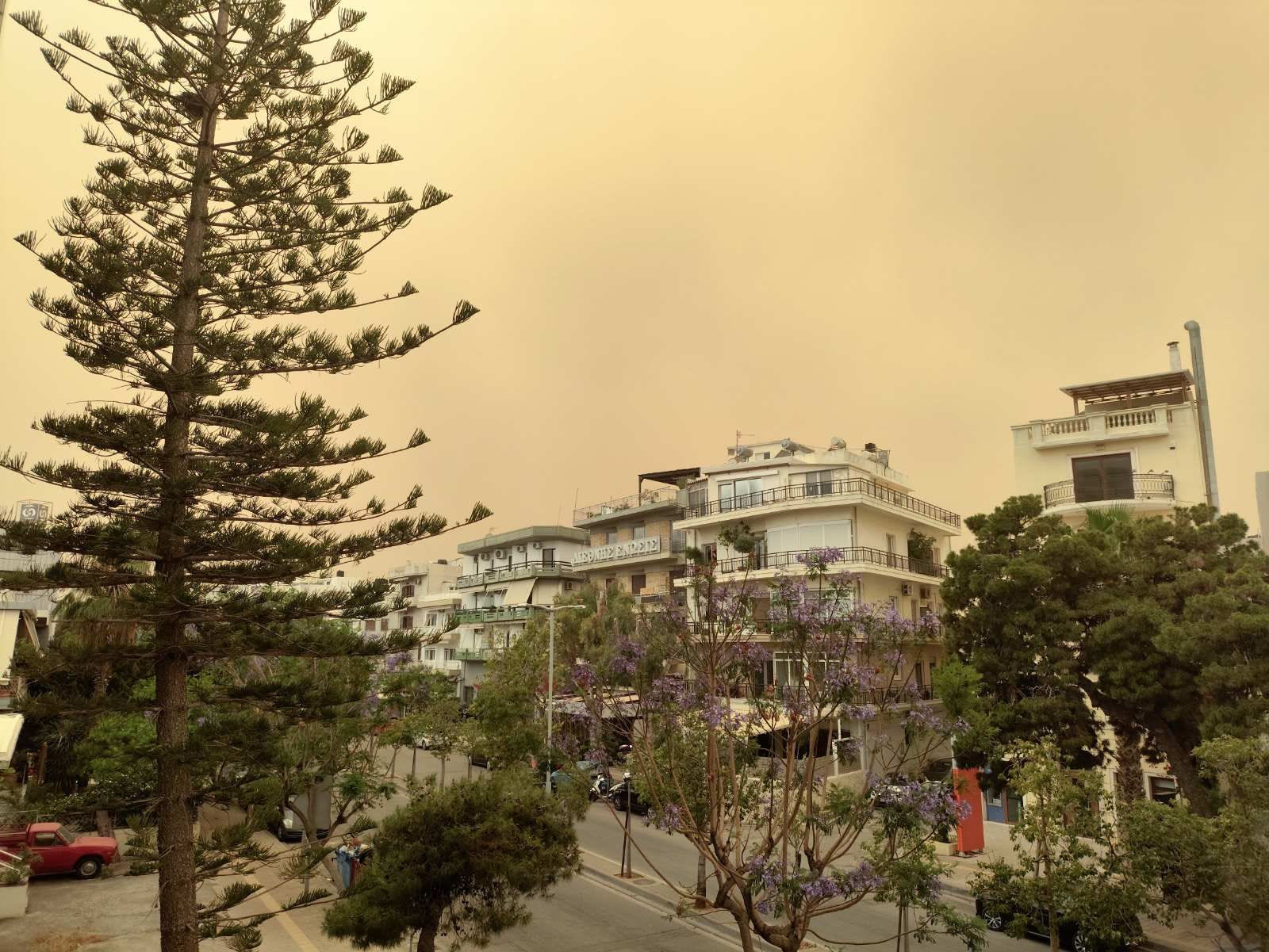 Πέρα από την αίσθηση που αφήνουν στα πνευμόνια και στην μύτη οι υψηλές συγκεντρώσεις σκόνης στην ατμόσφαιρα, η συνθήκη αυτή έχει πλέον αποτυπωθεί και οπτικά στον ουρανό με αυτό το χαρακτηριστικό πορτοκαλοκίτρινο χρώμα. Οι εικόνες μας πάνε πίσω στο 2018, όπου και τότε αυτό το χρώμα είχει σκεπάσει τον ουρανό.