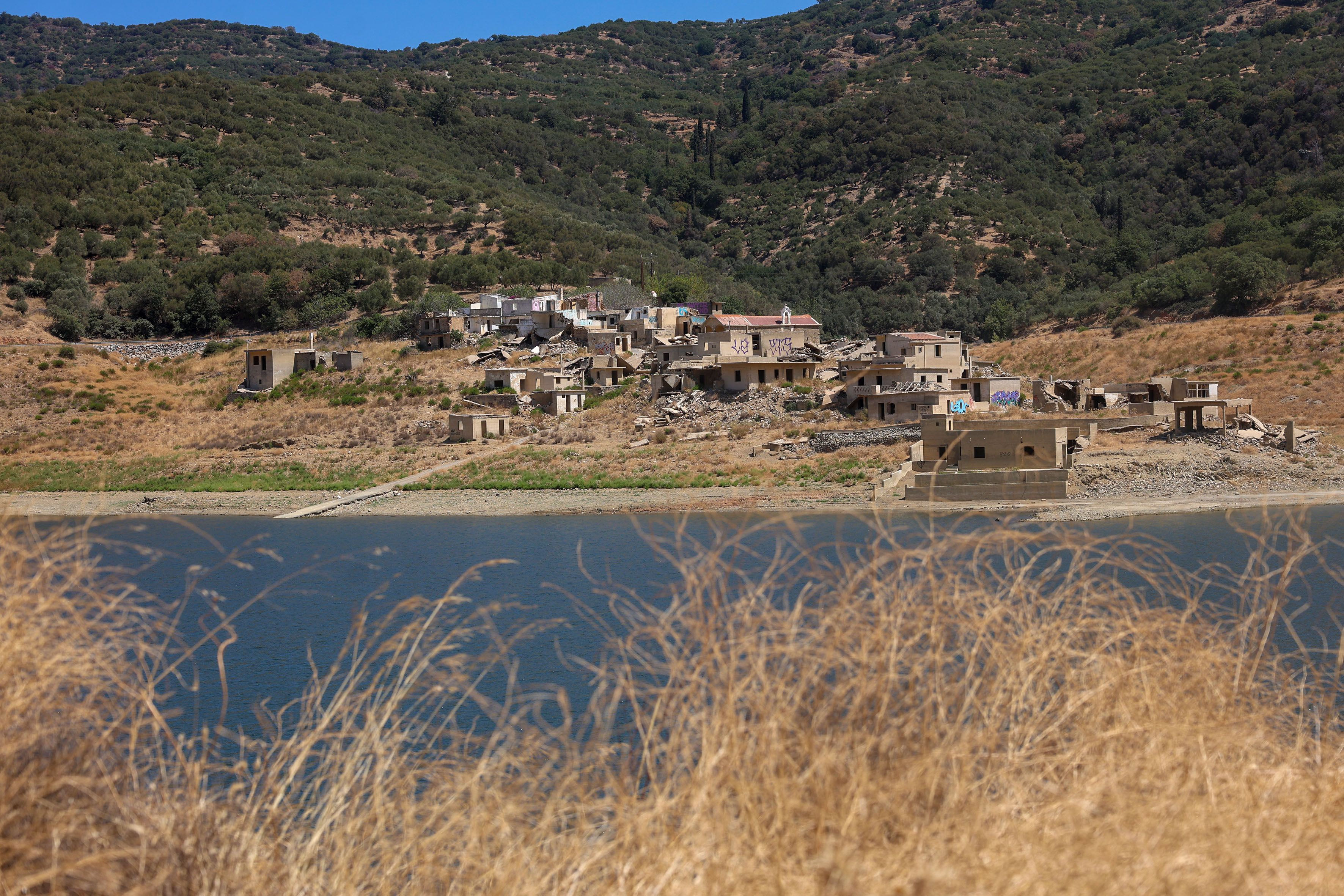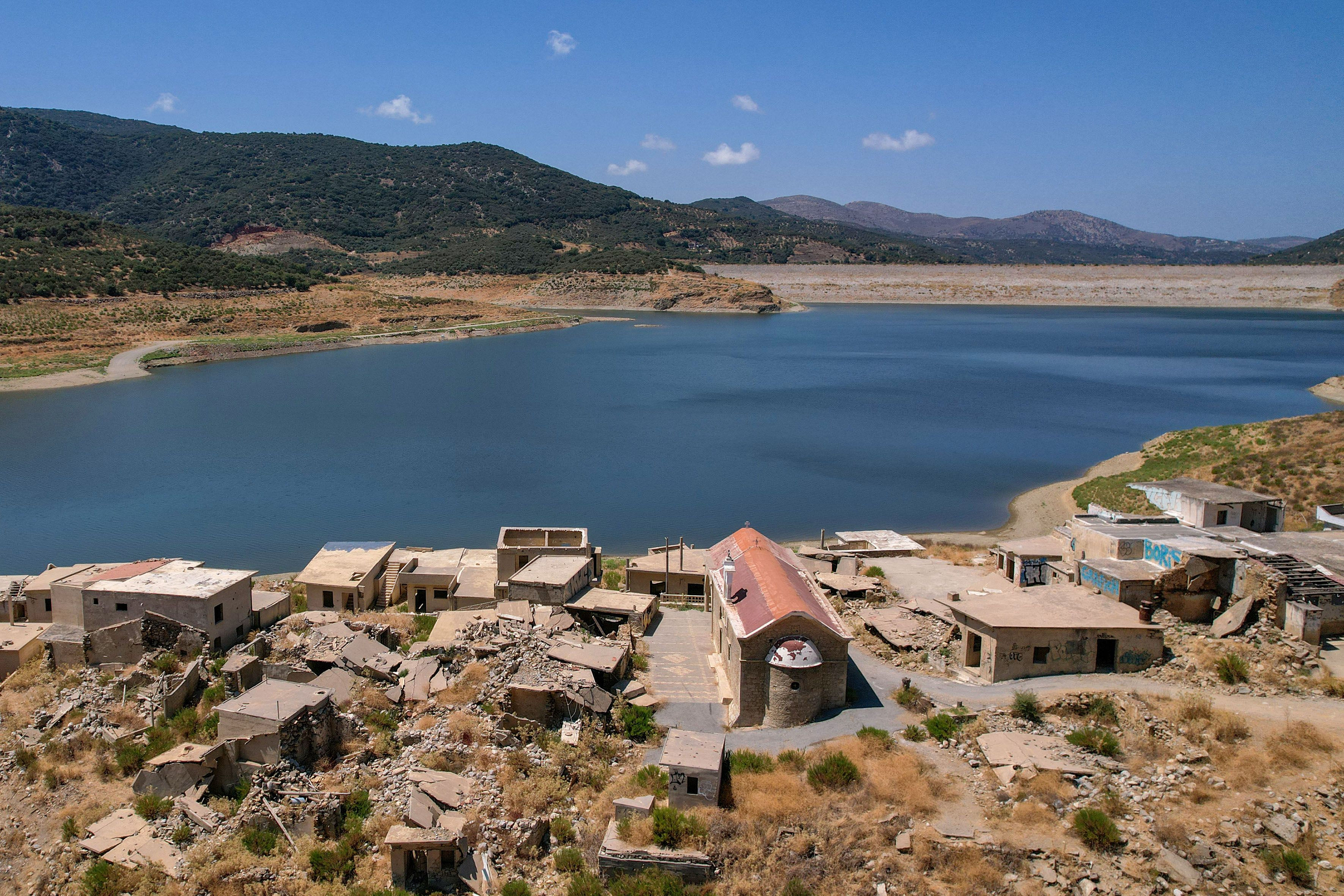 Η στάθμη είναι εξαιρετικά χαμηλή σε όλα τα σημεία γύρω γύρω, ενώ ο παραδοσιακός… δείκτης της κατατάστασης του φράγματος, το βυθιζόμενο χωριό, το Σφεντύλι μοιάζει… έτοιμο να κατοικηθεί ξανά.