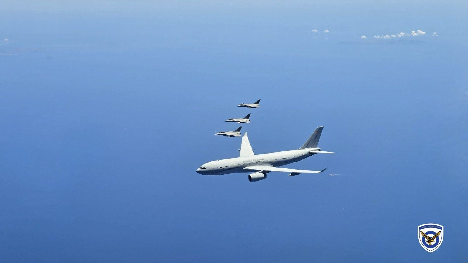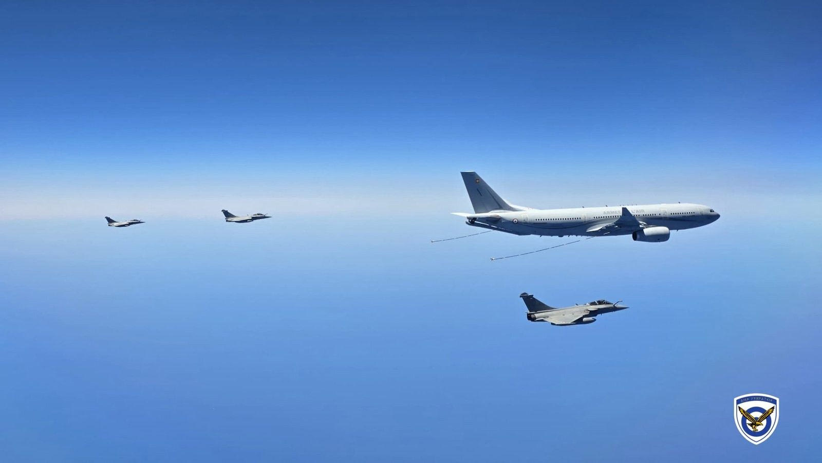 Κατά τη διάρκεια της συνεκπαίδευσης, η οποία πραγματοποιήθηκε νότια της Κρήτης, ένα αεροσκάφος εναέριου ανεφοδιασμού A330 MRTT της FASF, συνοδευόμενο από δύο μαχητικά Rafale, εκτέλεσε με ζεύγος ελληνικών Rafale της 332 Μοίρας, εναέριο ανεφοδιασμό και συνοδεία αυτού.
