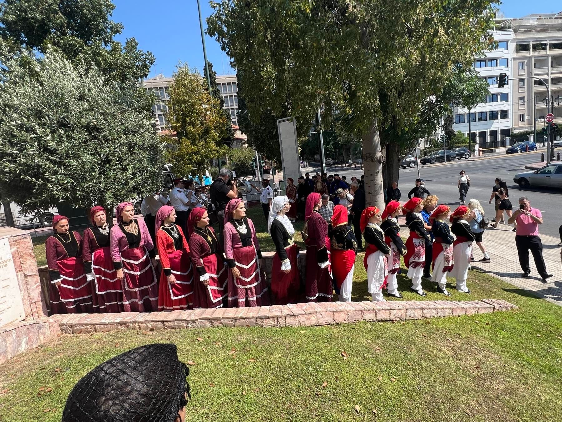 Κατόπιν της ομιλίας, 200 χορευτές ντυμένοι με παραδοσιακή κρητική φορεσιά σχημάτισαν έναν μεγάλο κύκλο· τα βήματά τους συντονίστηκαν στους ήχους της λύρας, που αντήχησε έντονη και βαθιά, θυμίζοντας σε όλους πως η παράδοση κρατάει άσβεστη την ιστορική μνήμη.