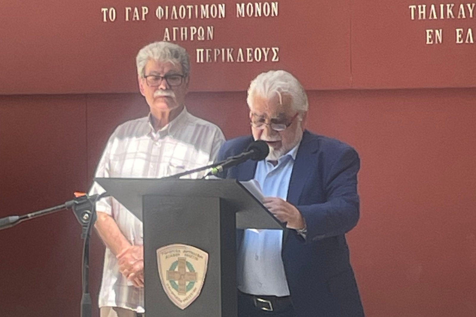 Στην ομιλία του, ο πρώην προέδρος της Παγκρητίου Ενώσεως και εκδότης της «Π», Κώστας Ξυλούρης, εξιστόρησε με λόγια μεστά και συγκινητικά στην περιπέτεια του μνημείου μέχρι να βρει την θέση που του αξίζει στην αττική γη.