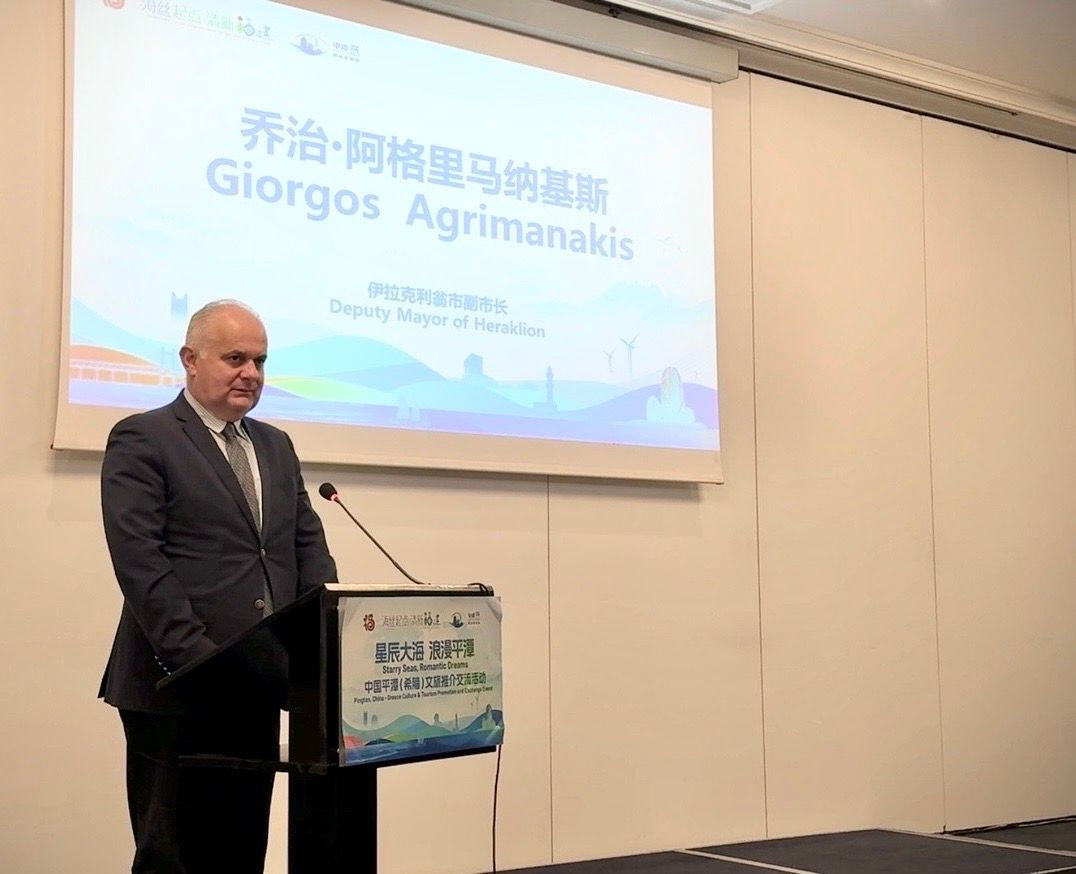 Ειδικότερα, ο Αντιδήμαρχος Τουρισμού & Οικονομικών Γιώργος Αγριμανάκης, εκπροσωπώντας τον Δήμαρχο Ηρακλείου Αλέξη Καλοκαιρινό, υποδέχθηκε την αποστολή στη Λότζια, πραγματοποιώντας συνάντηση εργασίας όπου τέθηκαν στο επίκεντρο οι δυνατότητες τουριστικής και πολιτιστικής συνεργασίας μεταξύ των δύο περιοχών, καθώς και οι τρόποι προώθησης κοινών δράσεων που θα ενισχύσουν την τουριστική συνδεσιμότητα μεταξύ Ηρακλείου και Πινγκτάν. Παράλληλα, ο Γιώργος Αγριμανάκης πραγματοποίησε την επίσημη έναρξη των εργασιών του Συνεδρίου, τονίζοντας τη σημασία της ελληνοκινεζικής συνεργασίας στον τομέα του τουρισμού, της πολιτιστικής ανταλλαγής και της βιώσιμης ανάπτυξης.